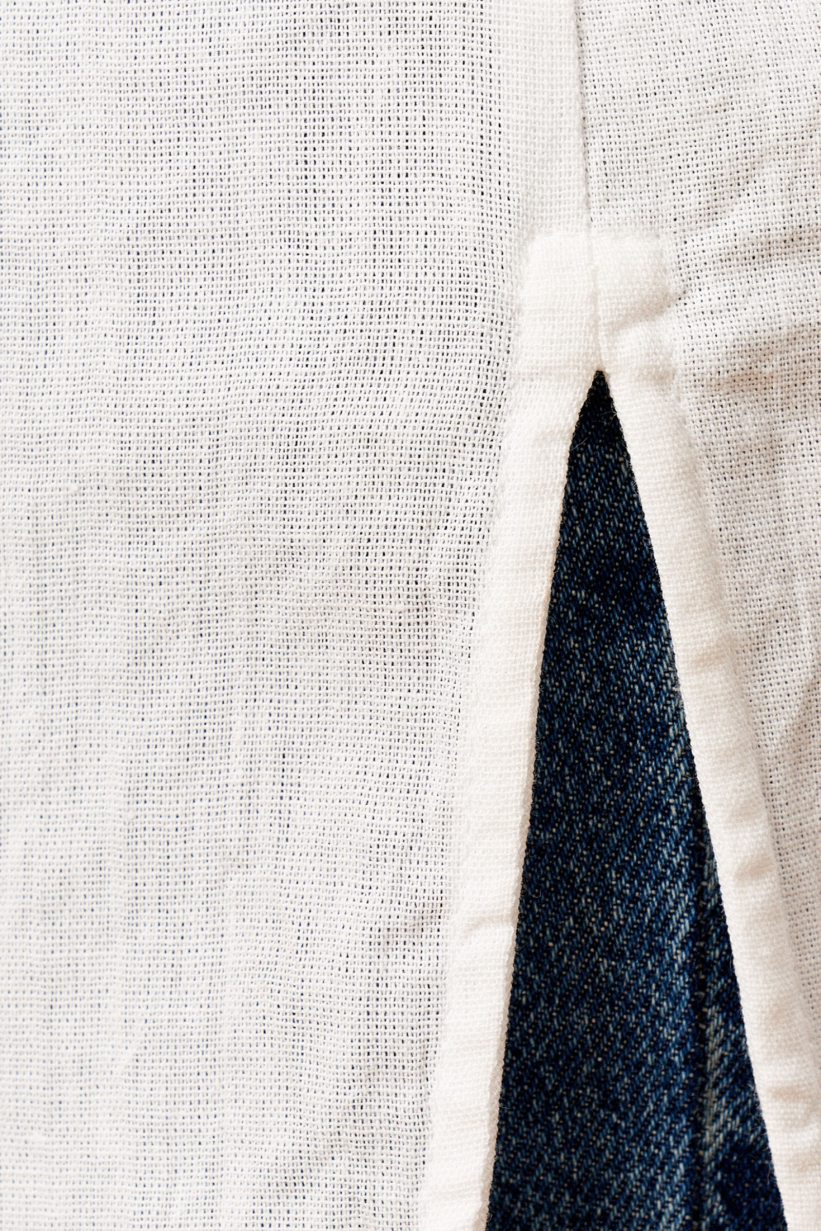 Рубашка-блузка женская белая застегивается спереди на пуговицы, пришитые к планке. Спереди и сзади закругленный низ. Спинка присборенная у отрезной облегающей кокетки и боковые разрезы делают блузку свободной и не стесняющей движения.