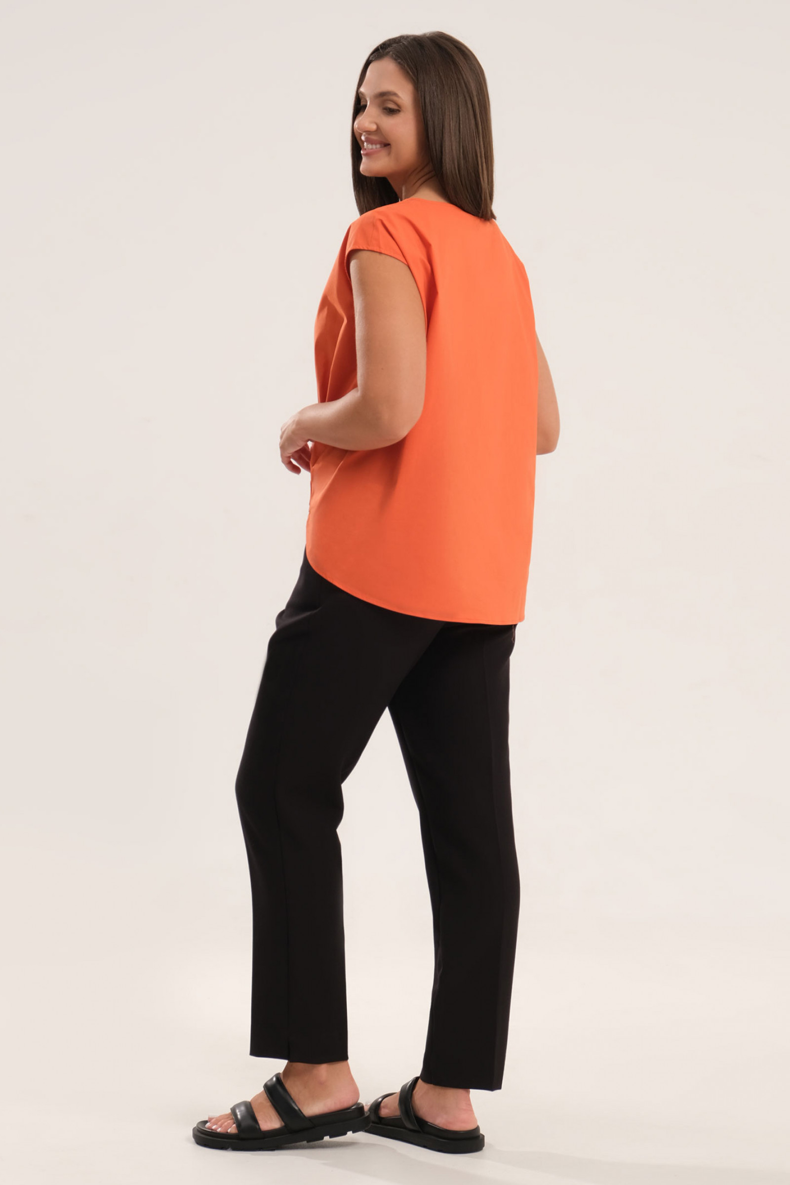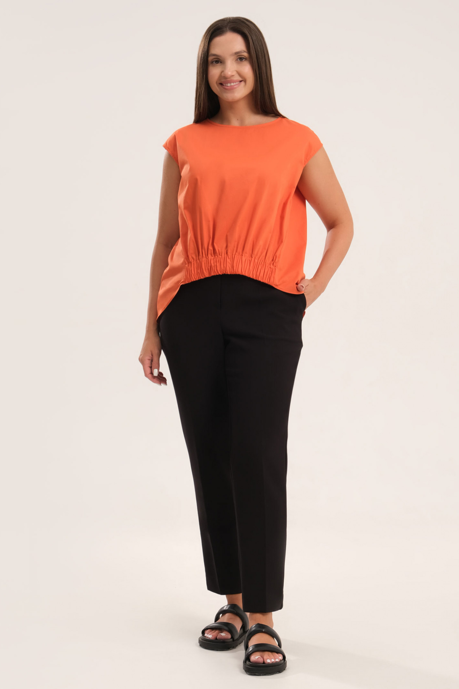 Стильная блузка из хлопковой ткани . Блузка прямого силуэта, с круглым вырезом горловины, со спущенной линией плеча, с рельефными швами, низ блузки с перепадом длины, по переду низ обработан резинкой. Спинка лаконичная .Блузка- это тренд на все время, она относится к базовой части гардероба. С помощю блузки можно создавать интересные образы на каждый день.