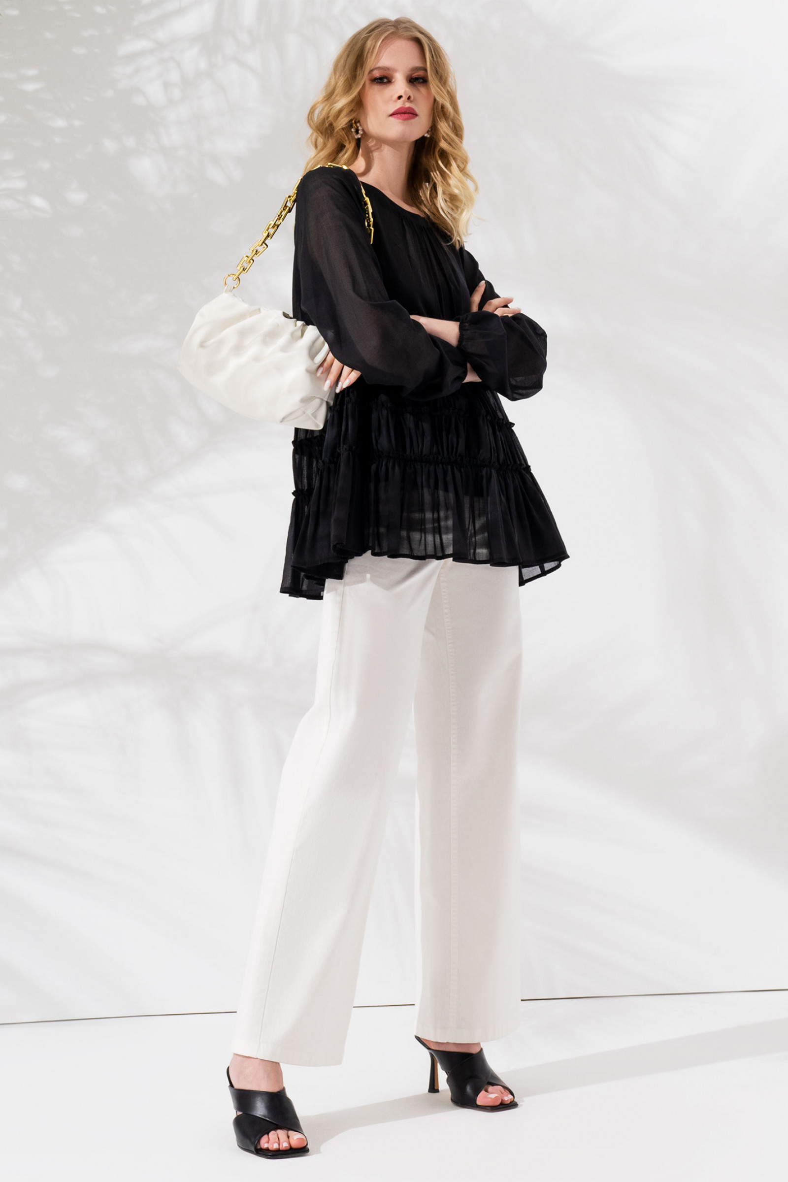 46 Туника: Длина изделия - 72см, Длина рукава - 72см, Ширина по груди - 54см, Ширина по низу - 61см, Ширина по талии - 57см, Ширина рукава - 20.6см; Блузка: Длина изделия - 38см, Ширина по груди - 47см, Ширина по низу - 53см, Ширина по талии - 49см;