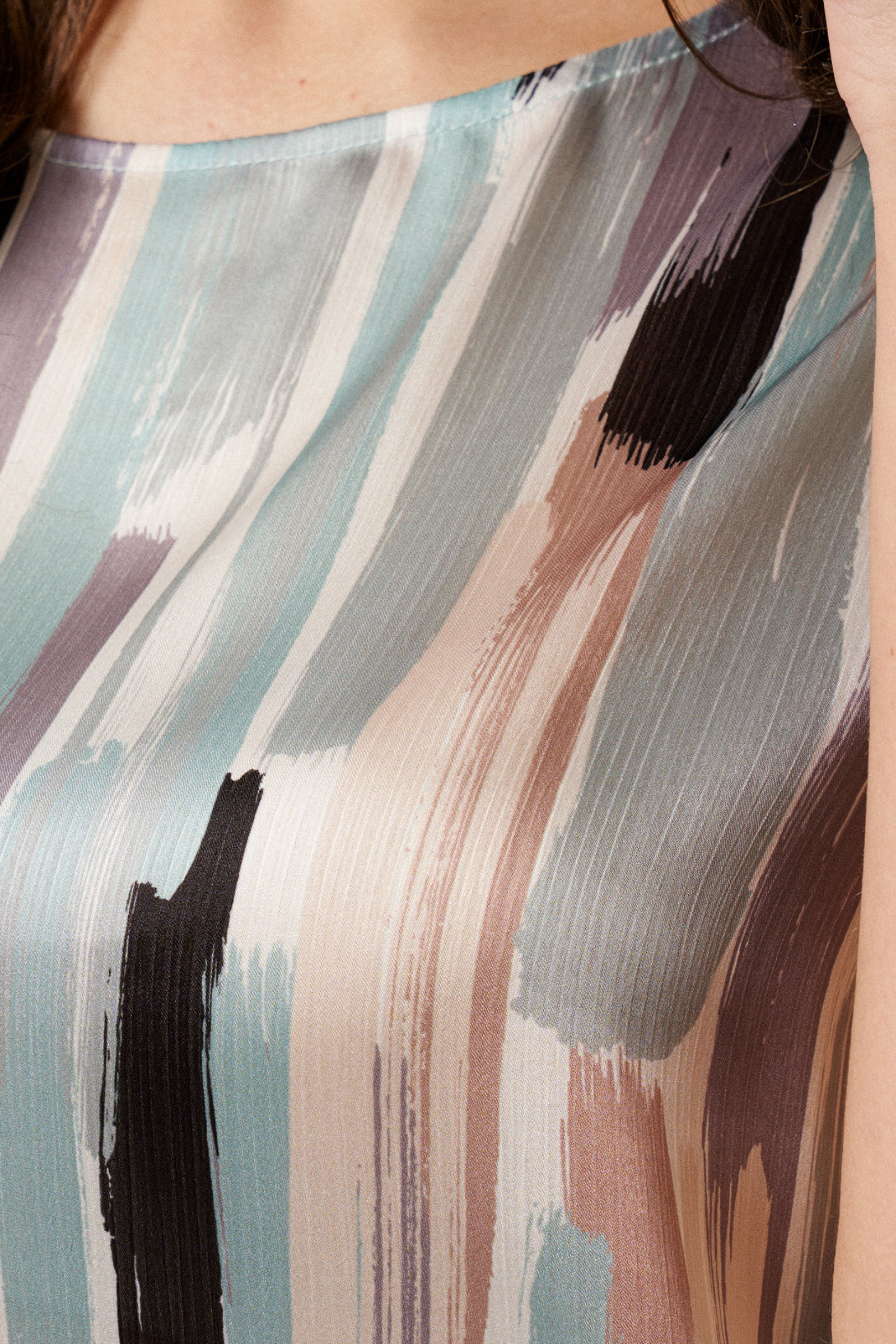 Легкая блузка скроена в полуприлегающем силуэте, подчеркнет достоинства вашей фигуры. Летняя женская блузка пошита без рукава, с округлым, чуть удлиненным вырезом горловины. Изделие создано из тонкого, воздухопроницаемого материала.