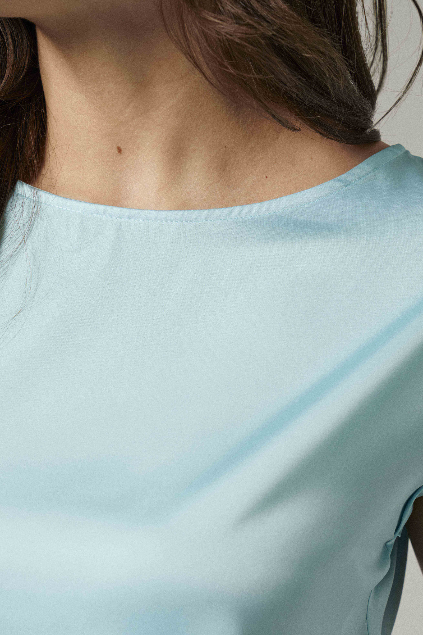 Блузка женская с коротким рукавом выглядит изящно благодаря мягкой ткани с характерным блеском. Она изготовлена из полиэстера и эластана - износоустойчивой и приятной на ощупь ткани, которая легко тянется и хорошо пропускает воздух. Блузка с коротким рукавом, вырезом горловины «лодочка» и аккуратно обработанным низом выполнена в прямом фасоне.