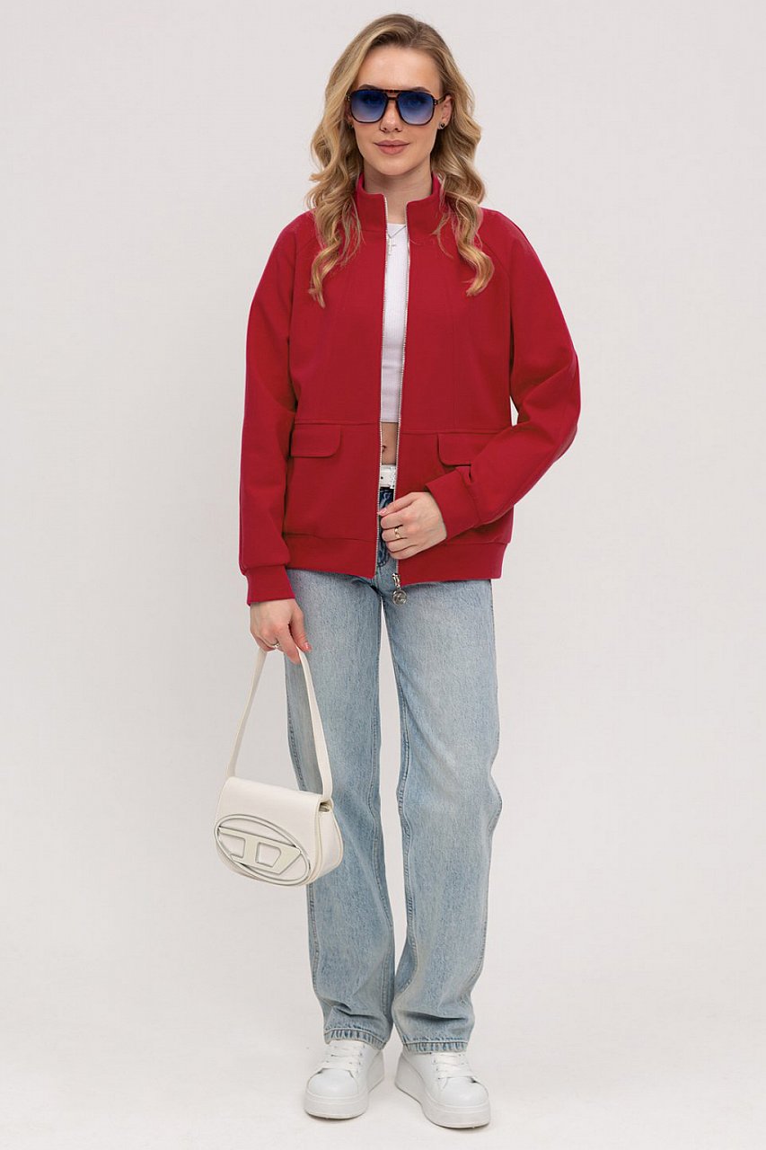 Женский бомбер с каждым годом лишь набирает популярность. Мягкий уютный, из трикотажа - он должен быть в гардеробе каждой девушки! Он хорош с джинсами, брюками, юбками и даже платьями! Отлично дополняет повседневные и праздничные образы. Воротник-стойка, застежка на молнию, объем изделия – свободный. Покрой рукава «реглан» очень комфортный в носке. Под клапанами – кармашки. Цветовая гамма удовлетворит вкус каждой покупательницы. Состав трикотажа: 40% хлопок, 50 % полиэстер, 10 % спандекс. красный