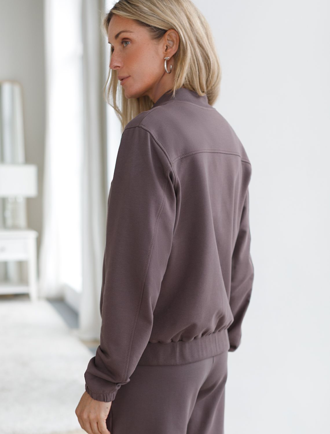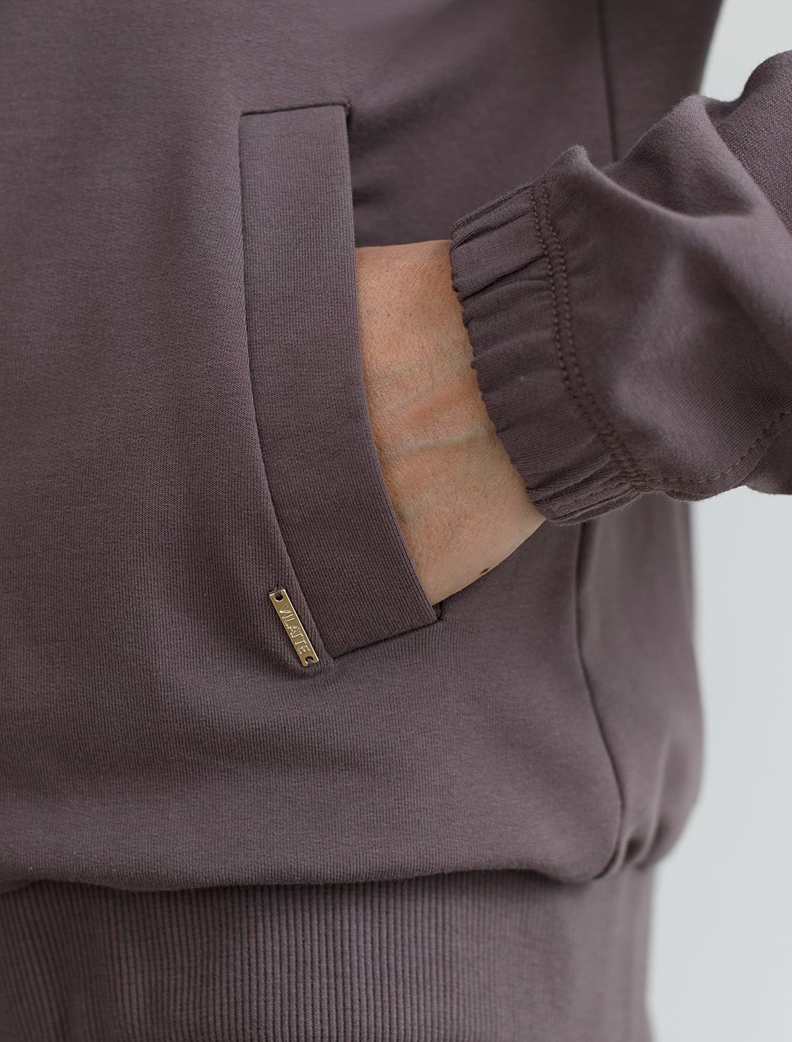 Бомбер кофейного цвета среднего объема на молнии с карманами из премиального футера двухнитки — это стильный выбор для ценительниц минимализма и комфорта. Натуральный состав обеспечивает дышащий эффект, мягкость и приятные тактильные ощущения, Эластичный материал позволяет свободно двигаться без лишнего стеснения, а также отлично сохраняет форму даже после длительного ношения. Манжеты на рукавах и резинка по низу обеспечивают надежную посадку, сохраняя тепло в прохладную погоду. Повседневный бомбер отличается аккуратным силуэтом без лишнего объема и универсальной длиной, которая идеально подходит для повседневного и спортивного образа. Прорезные карманы по бокам добавляют функциональности, сохраняя при этом стильный внешний вид. Бомбер из футера украшен деликатной вышивкой в виде эмблемы бренда, которая придает особый шарм и подчеркивает индивидуальность владелицы. Такой изысканный элемент декора гармонично сочетается с лаконичным дизайном, отвечая современным тенденциям моды. Так же на одном из карманов расположен небольшой металлический логотип бренда.