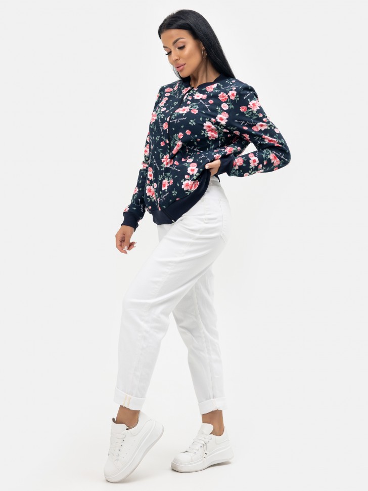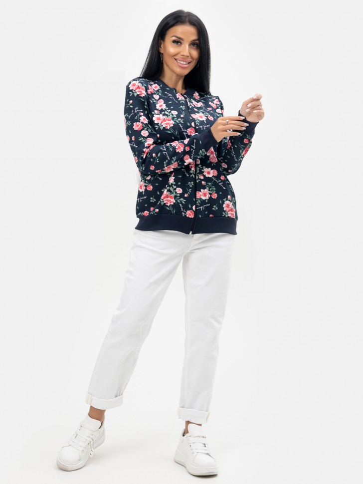 Бомбер женский на молнии с прорезными карманами, отделка эластичным кашкорсе горловины, манжет и низа изделия.