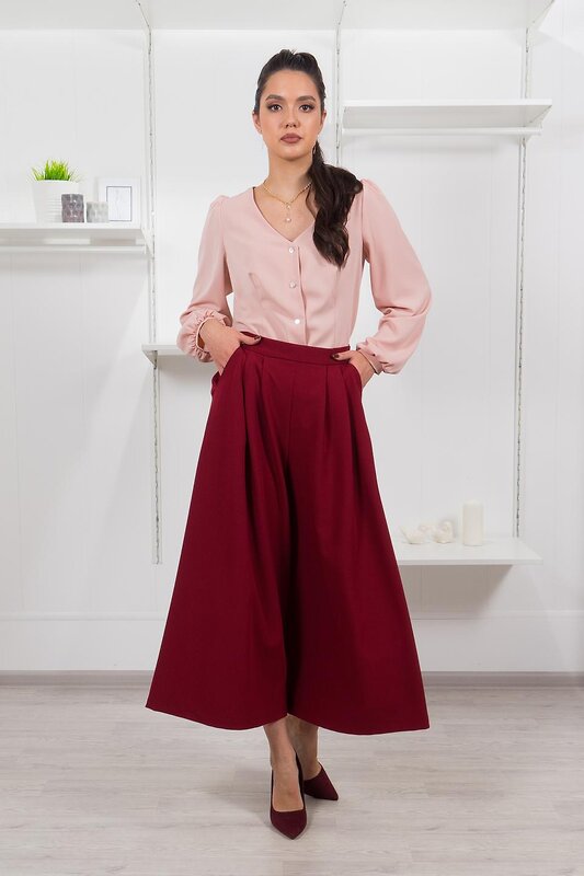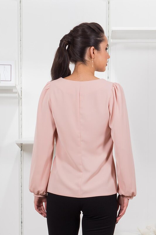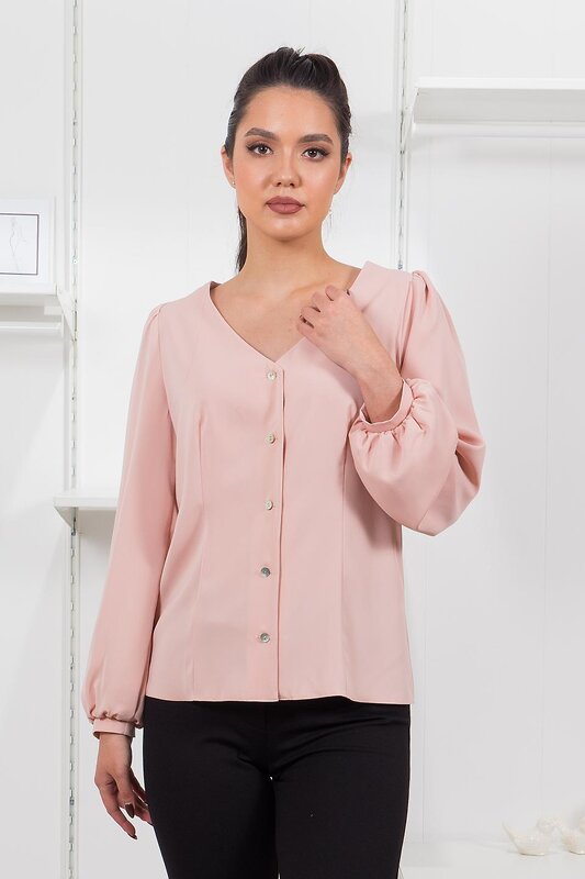 Женственная и романтичная, данная рубашка с V-образным вырезом мягко очерчивает фигуру, зрительно удлиняя шею и приоткрывая зону декольте. Пышные рукава со сборкой собраны на манжеты.