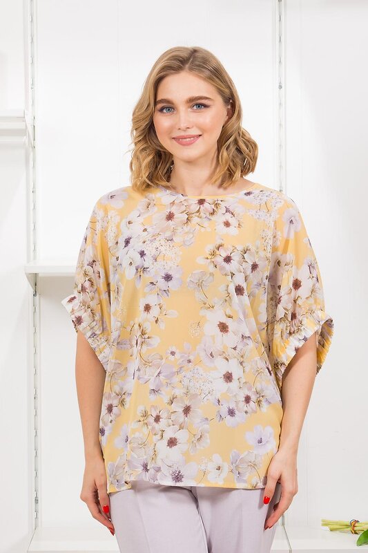 Воздушная укороченная блузка с цельновыкроеннми рукавами на широкой резинке подарит легкость силуэту и свободу движениям!