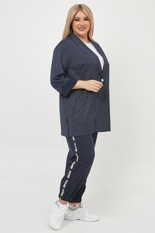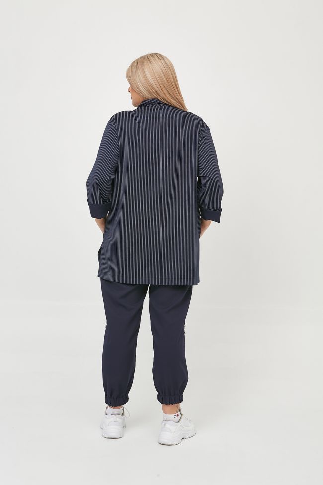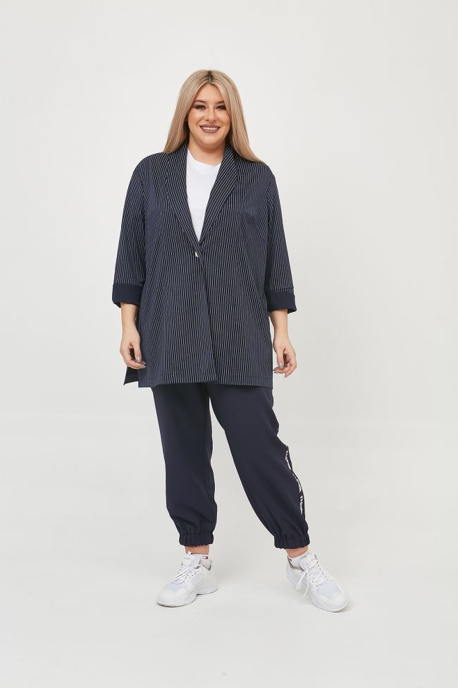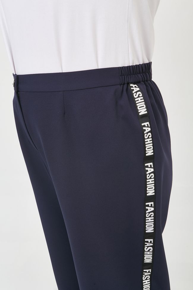 синий Эффектные брюки из однотонной костюмной ткани с высокой посадкой по фигуре. Модель на комбинированном поясе, с застежкой на  молнию и пуговицу. По боковым швам модный акцент в виде яркой репсовой ленты - лампасов. Низ присборен на широкую резину. Длина брюк по внуиреннему шву 71 см. Отличный вариант для стильного повседневного гардероба.