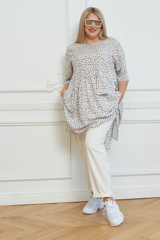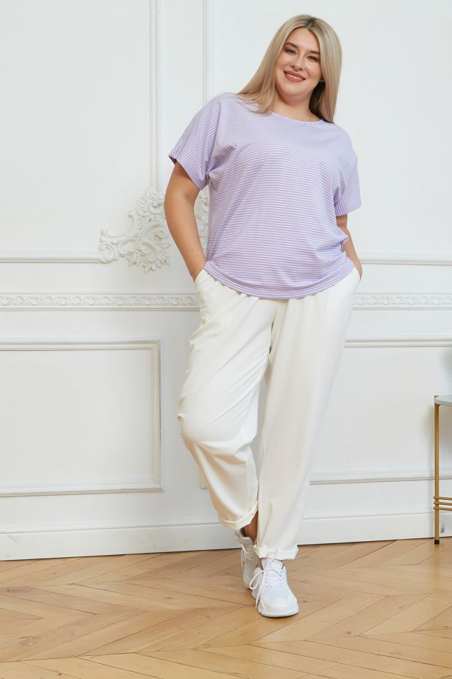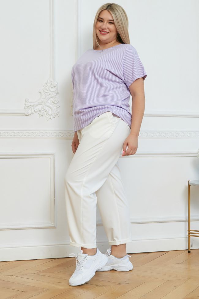 белый Эффектные брюки, свободного силуэта, с наклонными карманами по бокам и складками по талии. Выполнены из брючной ткани. Модель с комфортной высокой посадкой и комбинированным поясом,  застежка - гульфик на молнию и пуговицу. Модель составит гармоничный комплект с однотонными и принтованными топами и блузами. Отличный вариант для стильного повседневного гардероба. Длина по внутреннему шву 77 см.