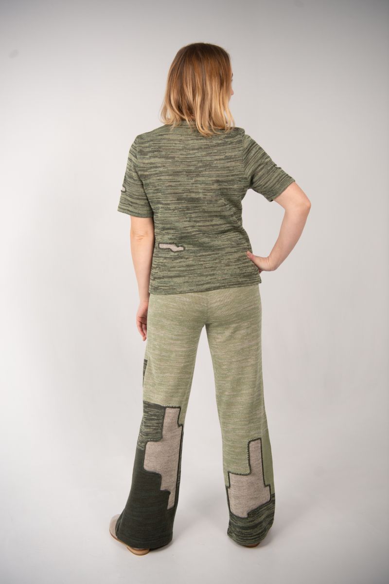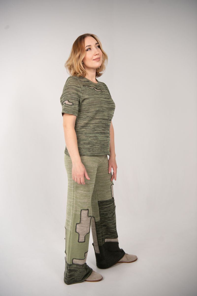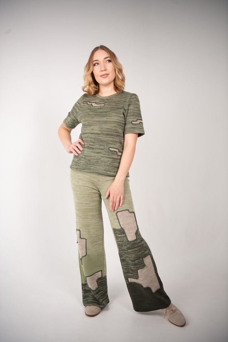 Описание: Брюки прямые, пояс на резинке, отделка, трикотаж.