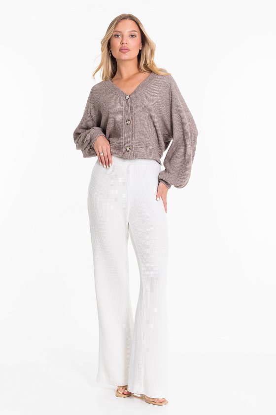 Женские брюки — отличный выбор для повседневной носки. Они изготовлены из вязаного полотна. Брюки свободного силуэта не сковывают движений, а широкий пояс на резинке обеспечивает комфортную посадку.