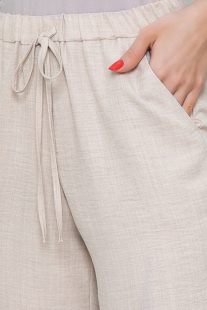 Легкие брюки свободного,прямого силуэта слегка заужены к низу из комфортного текстильного полотна, удобную посадку по талии обеспечивает эластичный пояс на резинке,В боковых швах функциональные карманы.