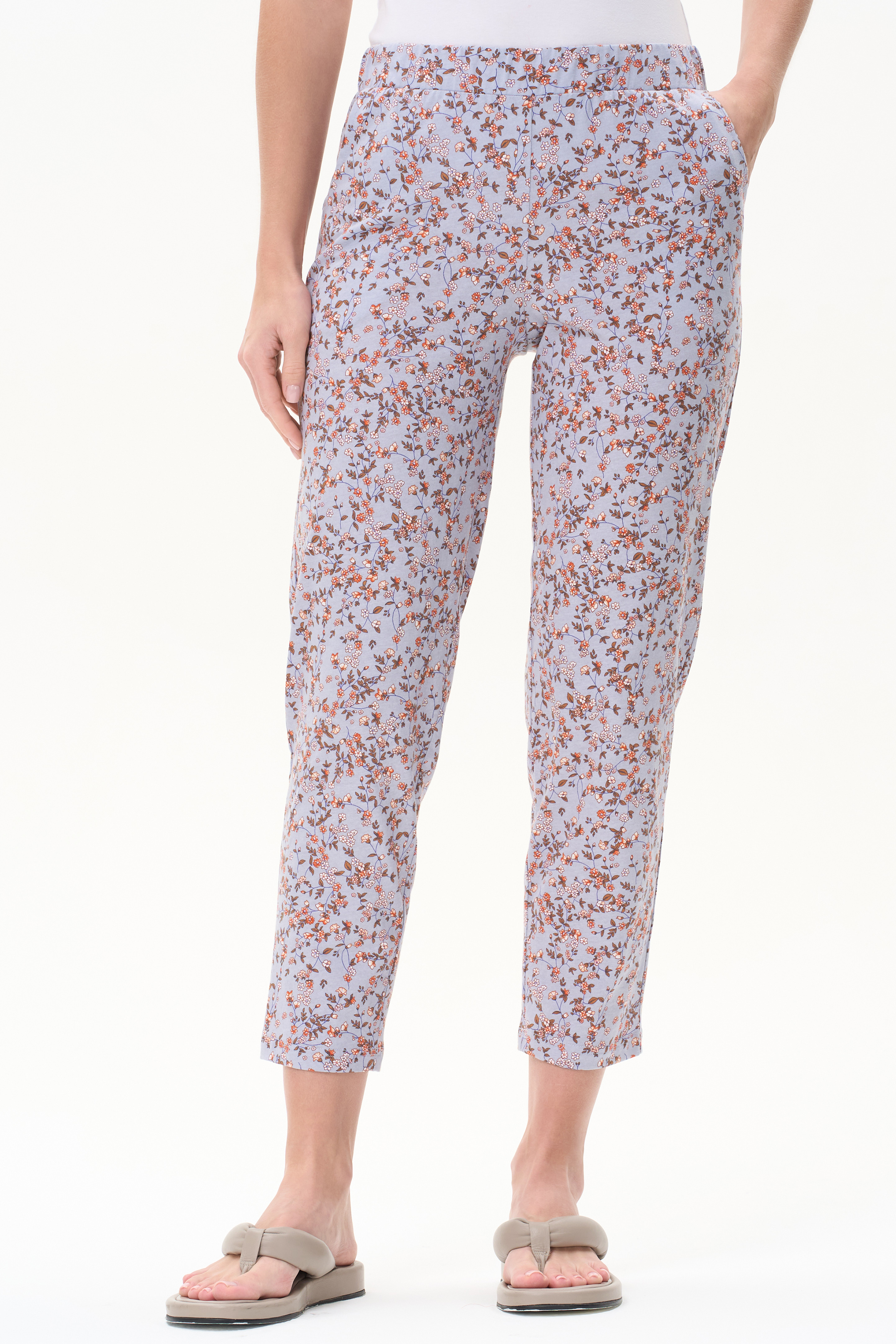 Универсальные брюки, длиной 7/8 из хлопкового полотна качества ПЕ. Пояс с эластичной лентой, два фигурных боковых кармана. Длина по боковому шву (без учета пояса) в 44 размере - 87см. Рост модели 175 см.