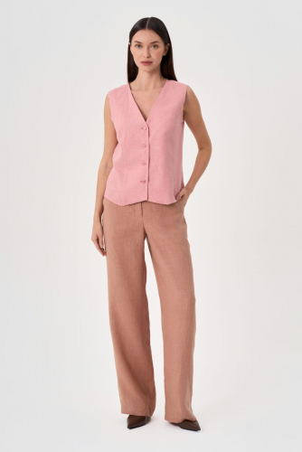 Брюки женские прямые. Пояс притачной с резинкой. Застежка гульфик на молнии. Боковые карманы в отрезном бочке.