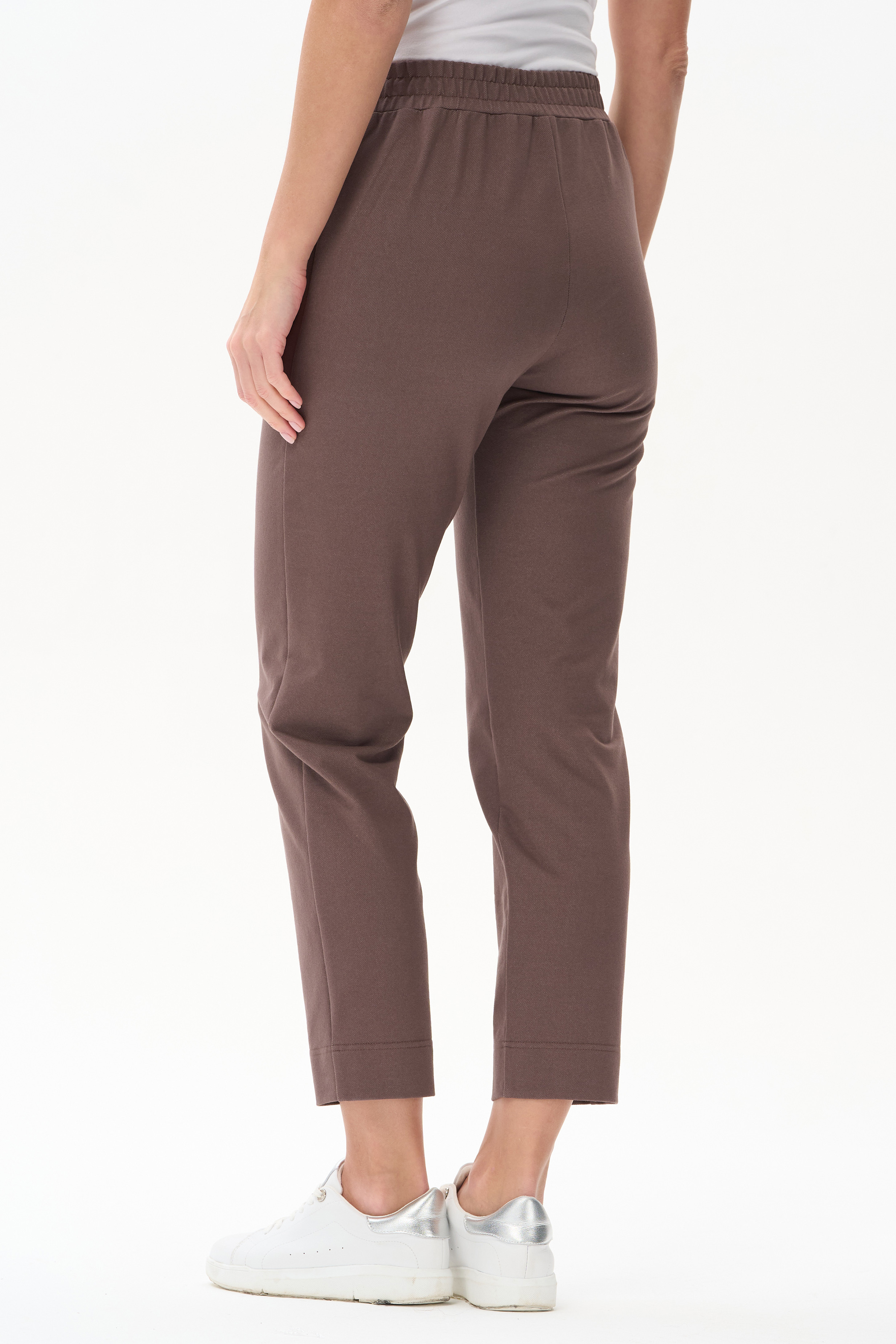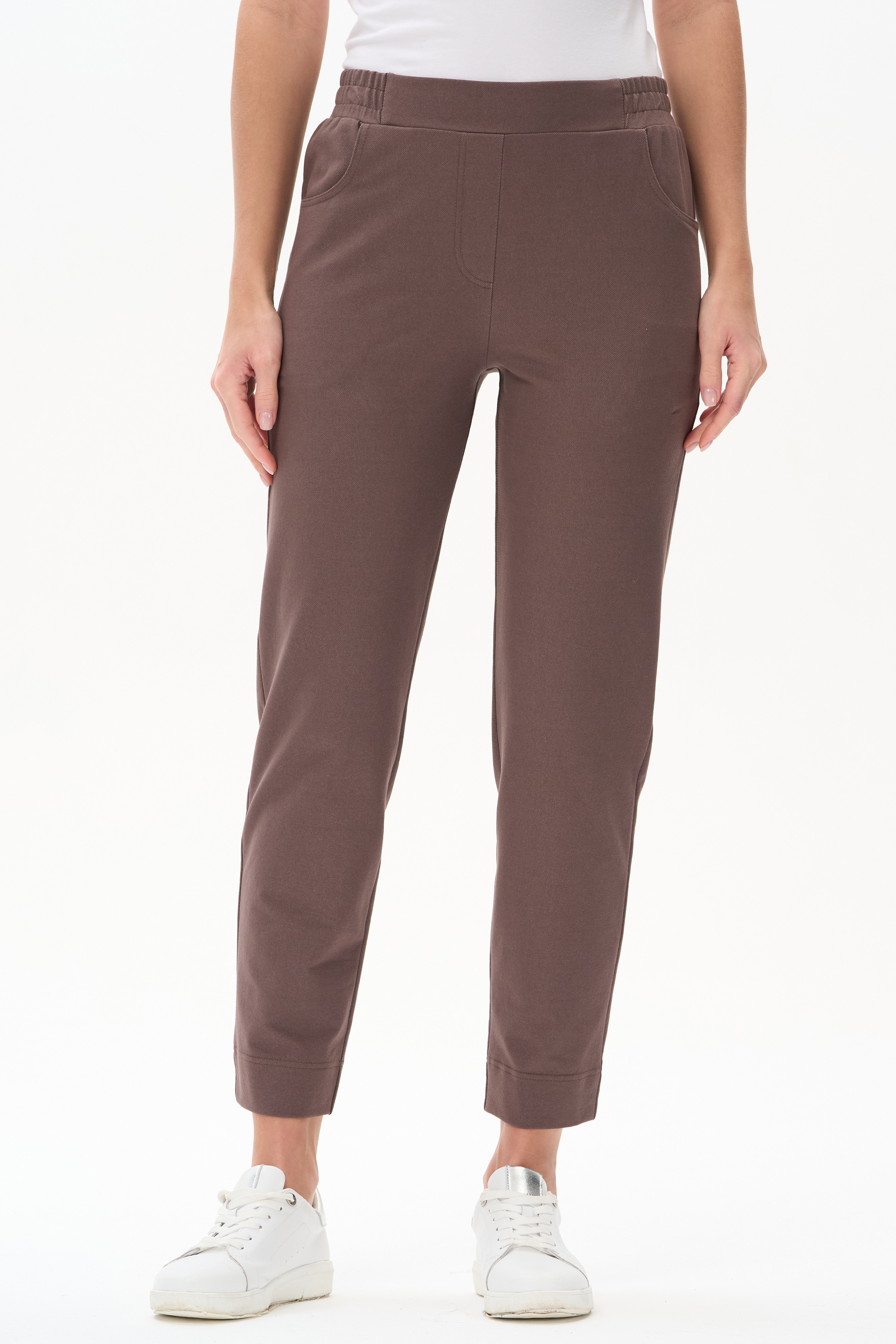 80% хлопок, 14% полиэстер, 6% эластан Укороченные брюки из джинскота 240 гр в трендовом оттенке Шоколад. Модель с комфортным прилеганием и идеальной посадкой. Зауженные к низу, фигурные карманы, пояс с эластичной лентой внутри. Длина регулируется отворотом по низу. Универсальная модель проверенная временем для городских образов, отдыха и путешествий. Рост модели 175 см.