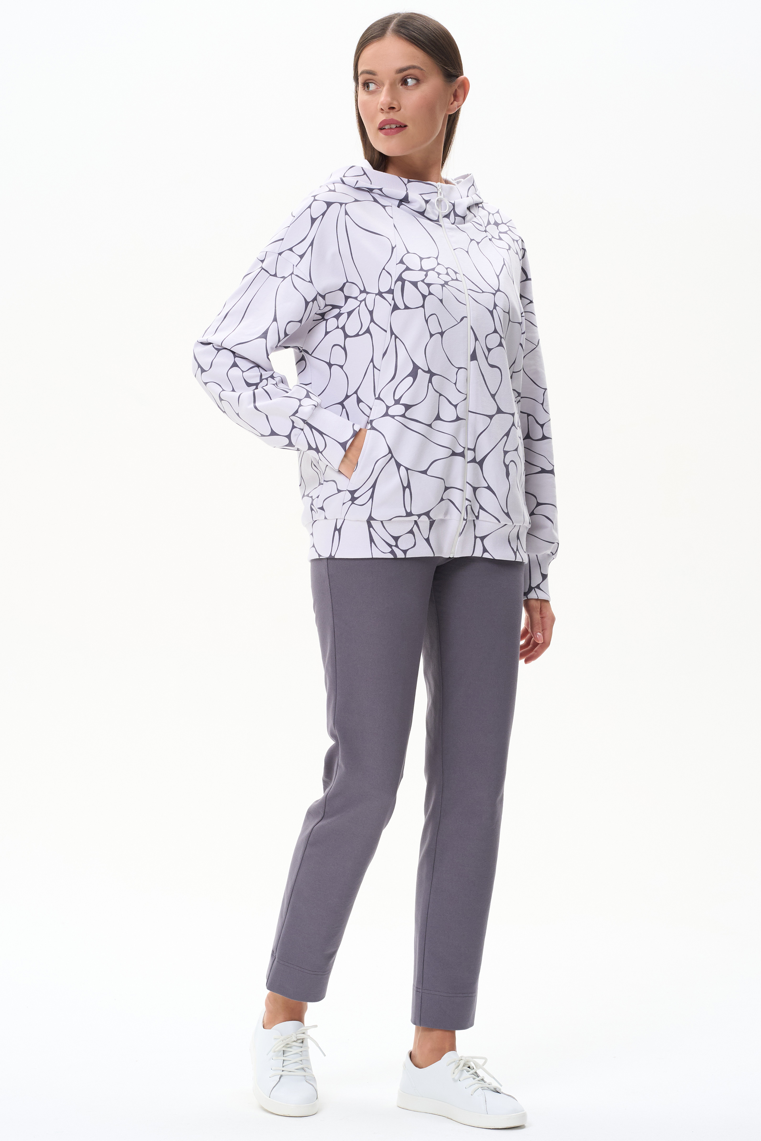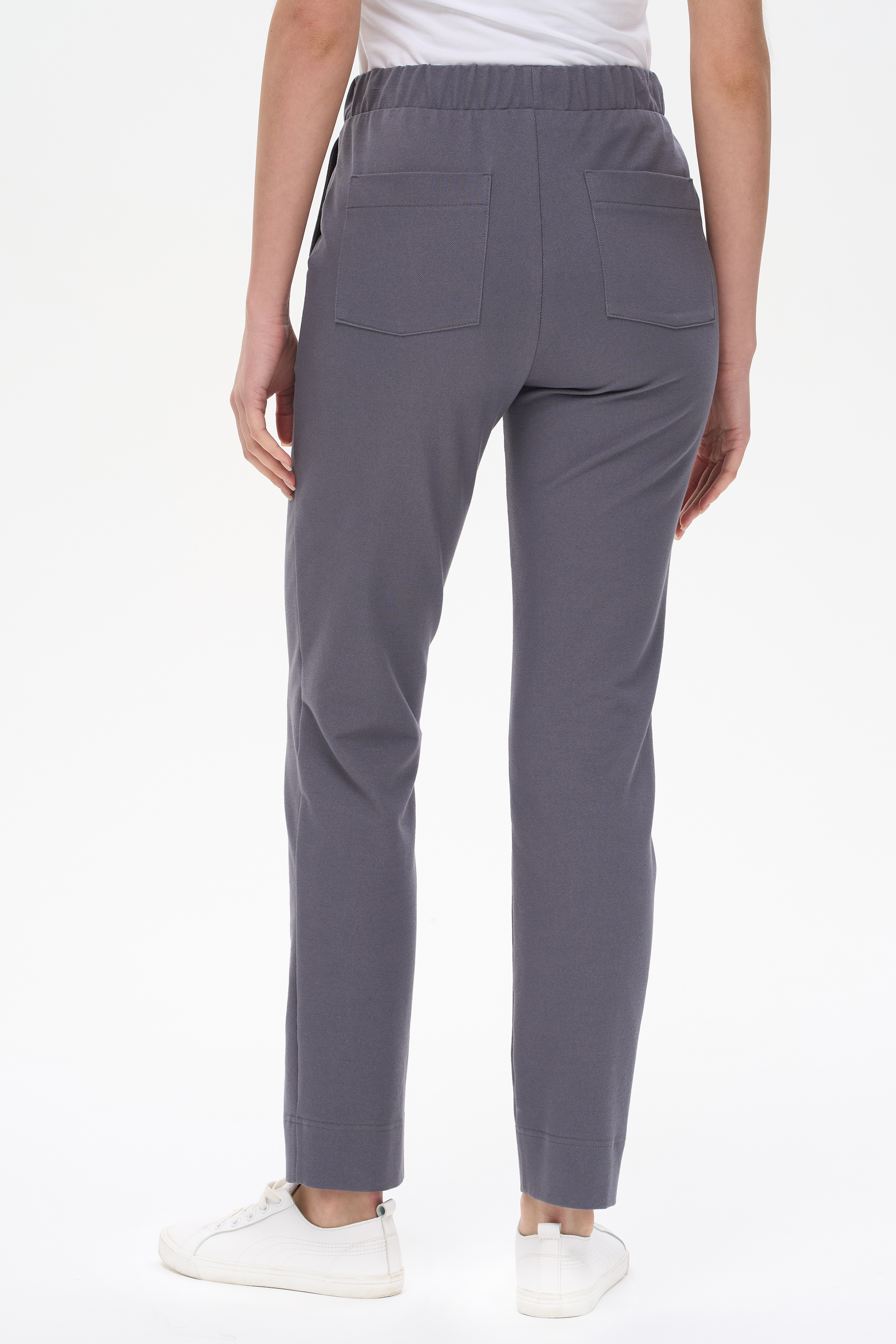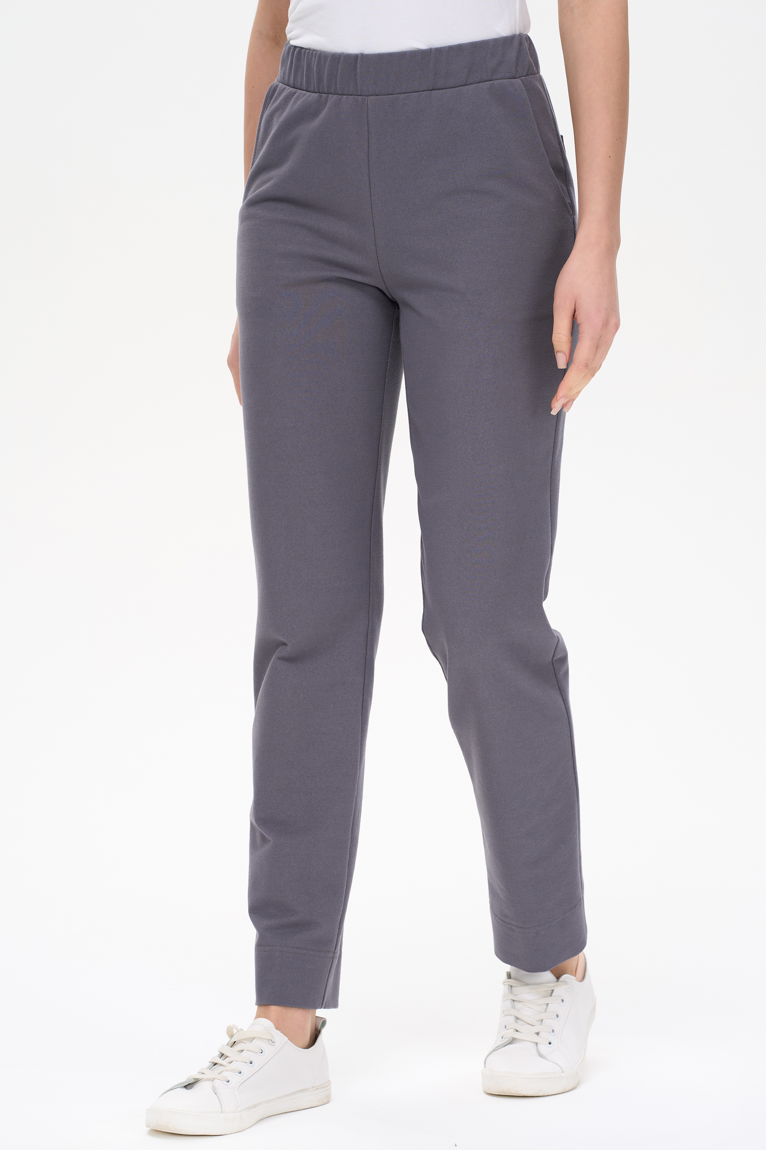Прямые брюки из джинскотта в трендовом оттенке Утренний туман Модель с удобными карманами, пояс с эластичной лентой внутри, сзади два накладных кармана. Длина брюк -100 см в 44 размере, регулируется подворотом. Рост модели 175 см