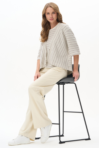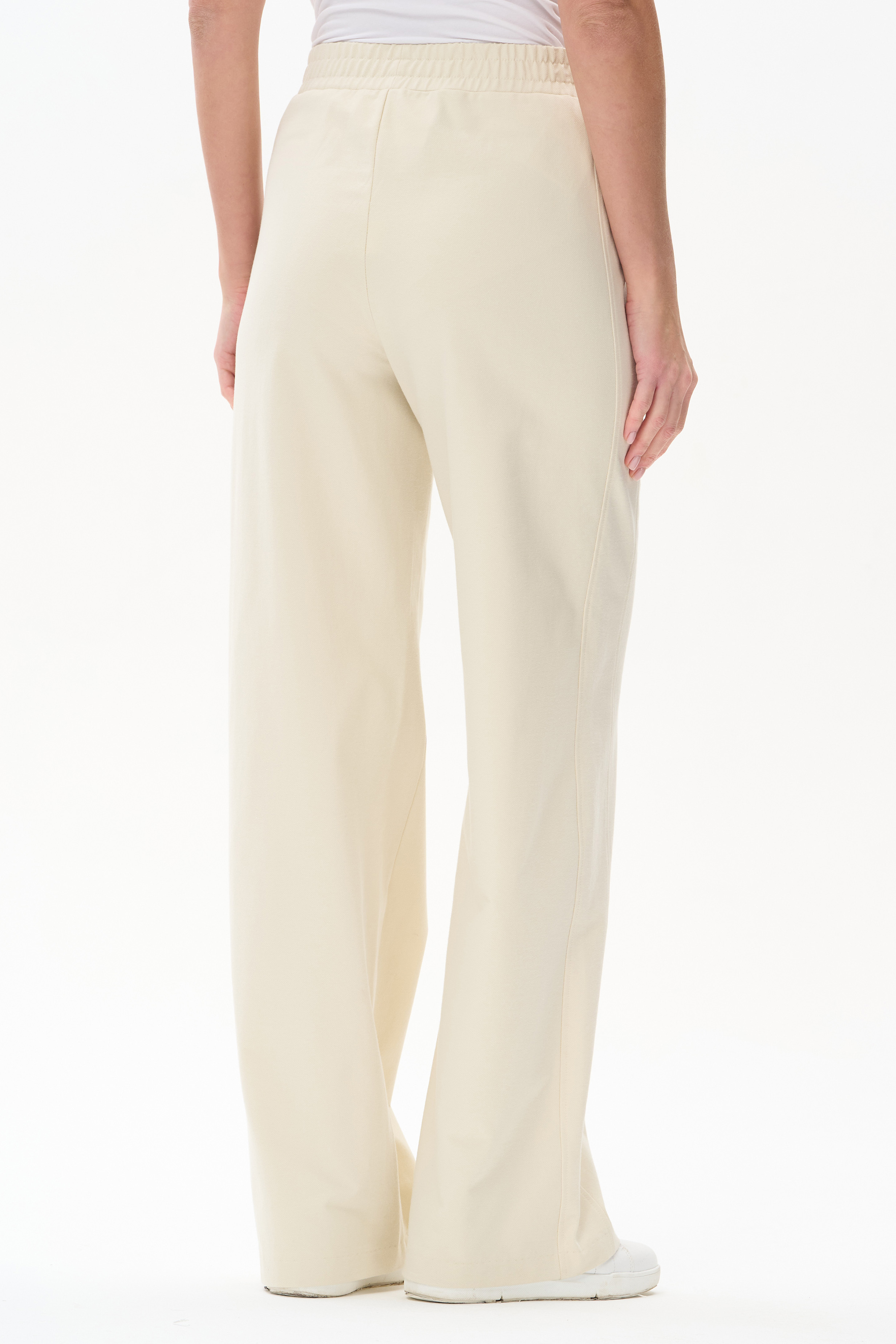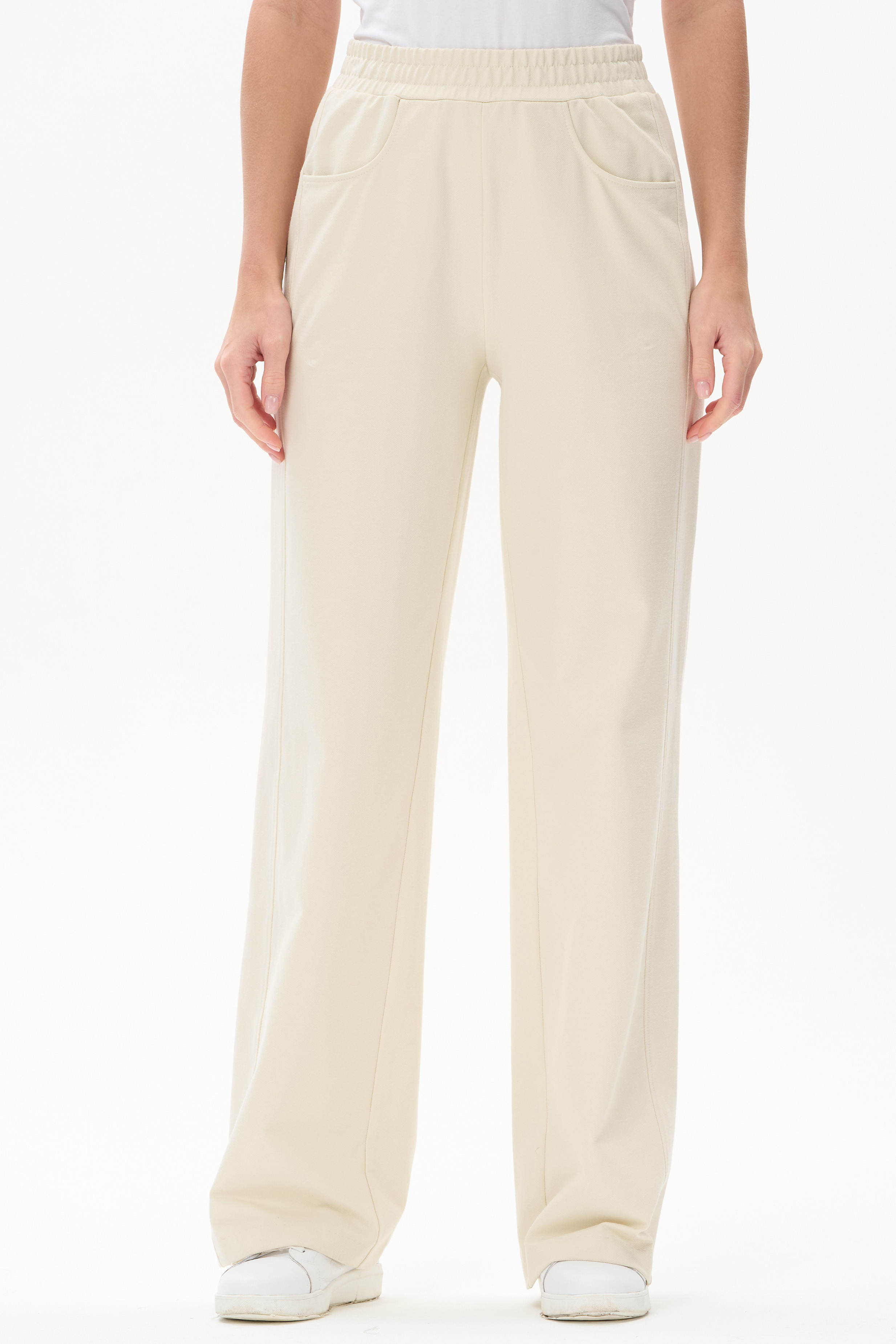80% хлопок, 14% полиэстер, 6% эластан Прямые брюки полной длины из джинскота 240 гр в трендовом оттенке Сливочный. Модель с высокой посадкой, спереди фигурные карманы, пояс с эластичной лентой внутри, отстрочки в тон полотна. Модные вставки в боковых швах, создают современный стильный силуэт. Рост модели 175 см.