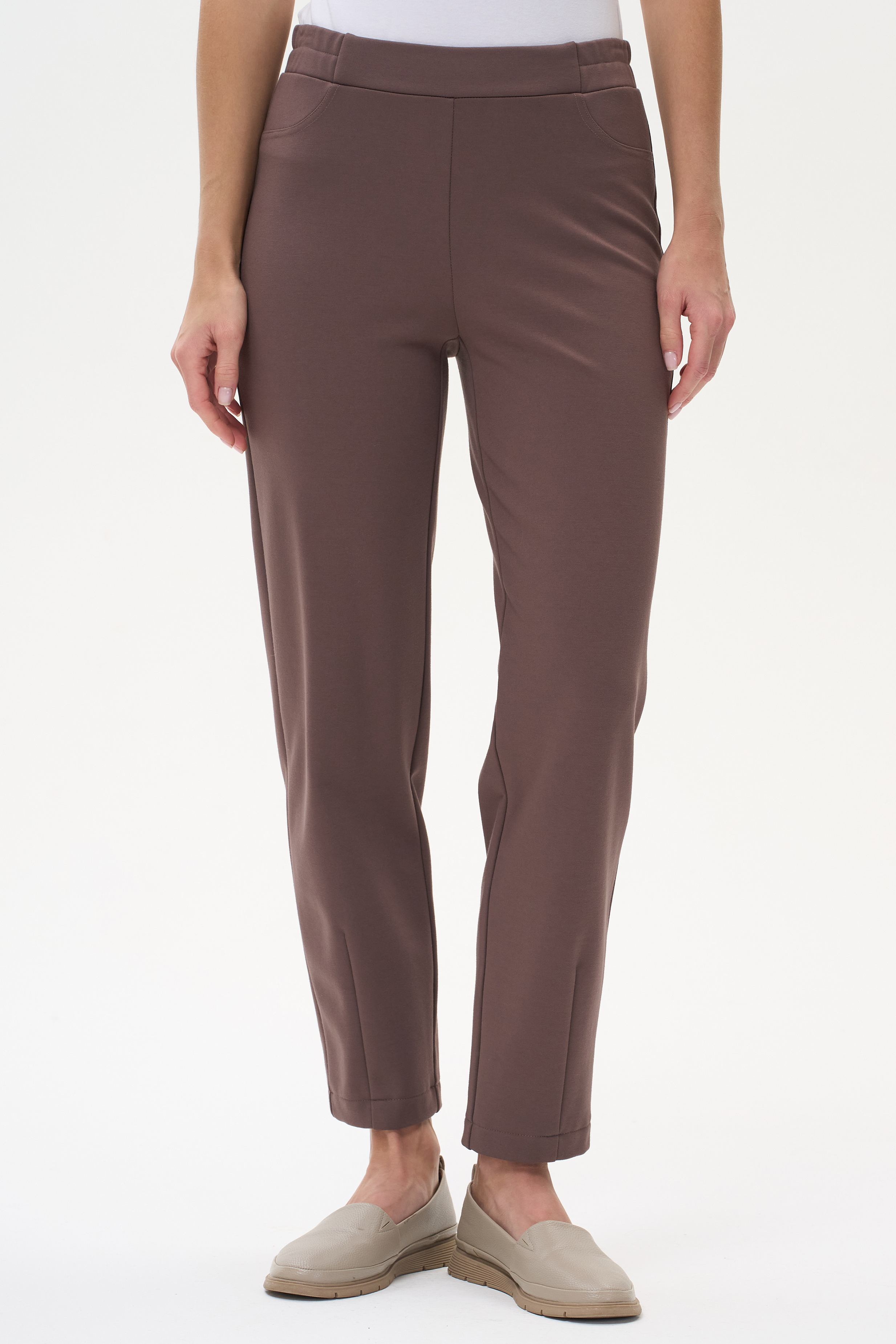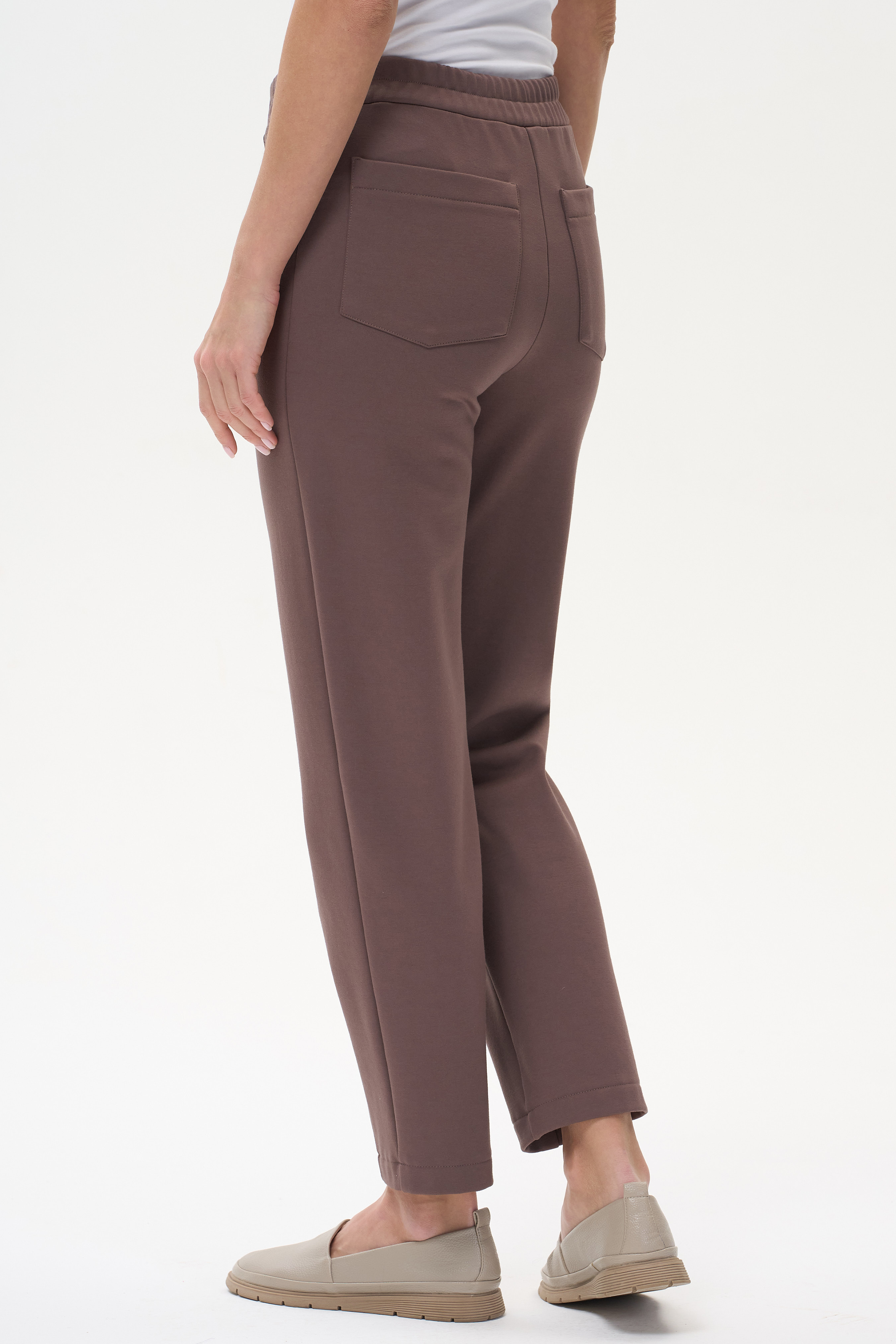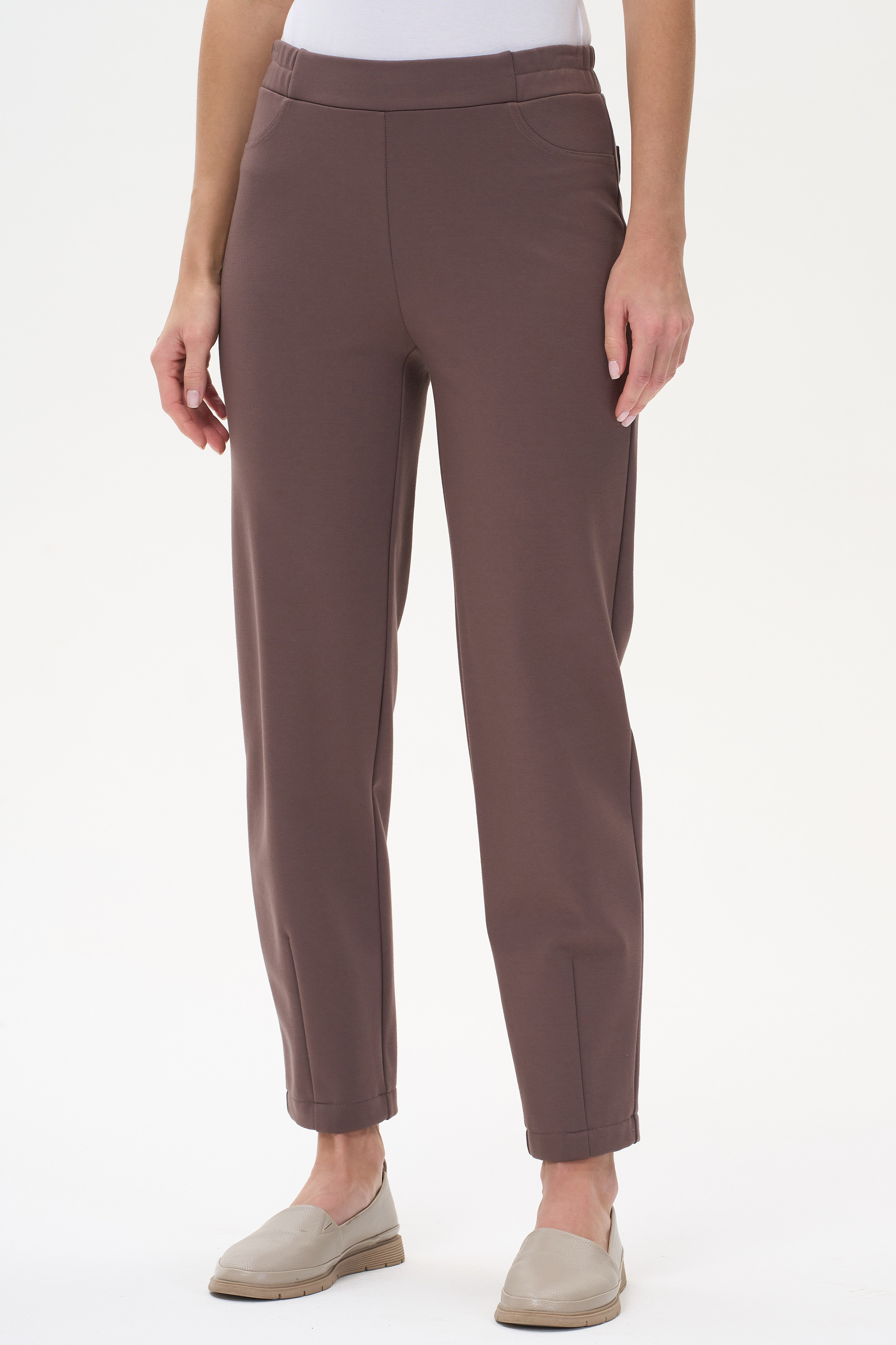 65% вискоза/ 27% полиэстер/ 8% эластан Утепленные зауженные брюки. Выполнены из плотного трикотажного полотна- бистрейч с начесом. Пояс с эластичной лентой внутри. Сзади два накладных кармана. Длина по боковому шву (без пояса) в 44 размере 93 см. Рост модели на фото 178 см.