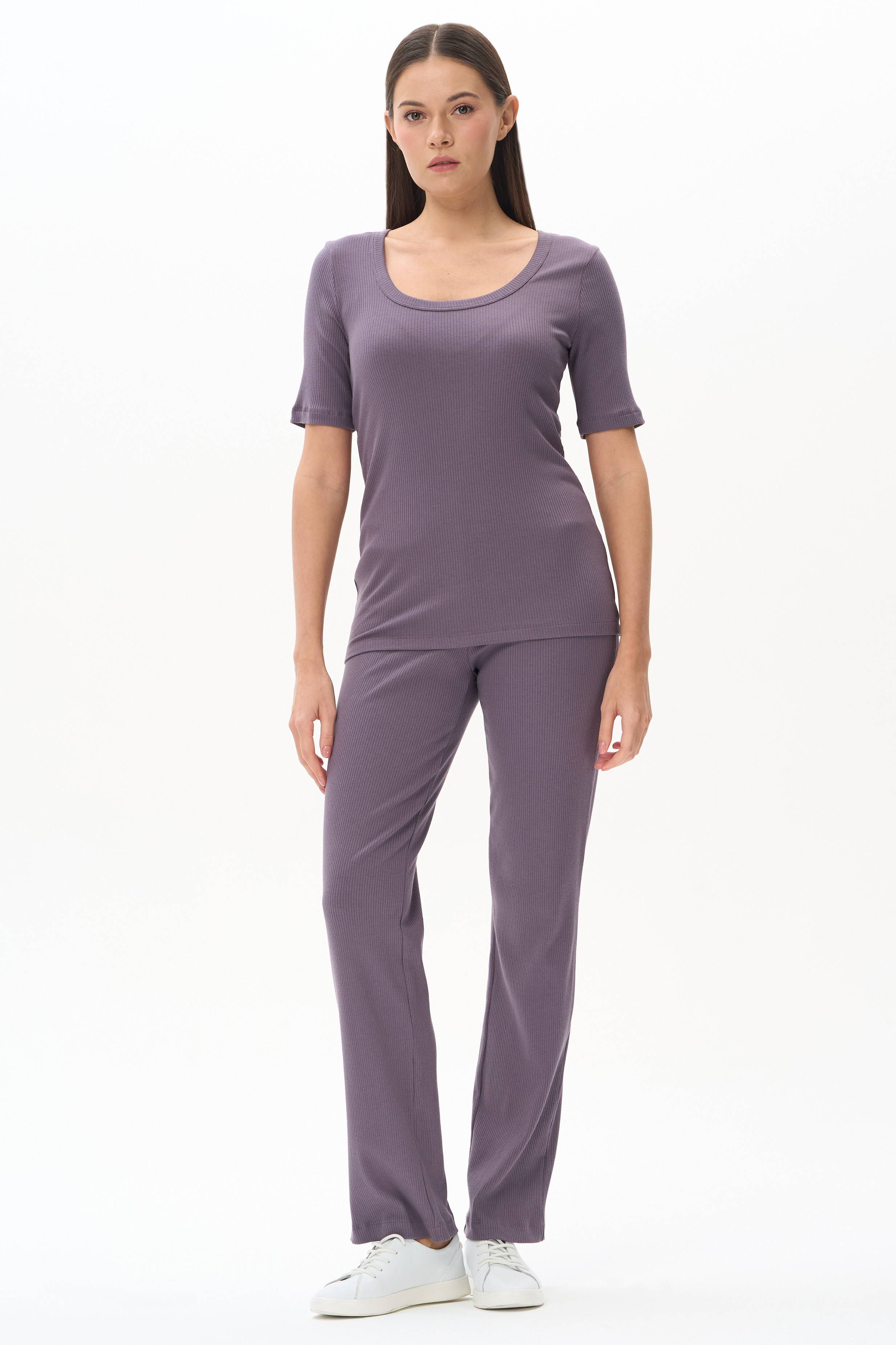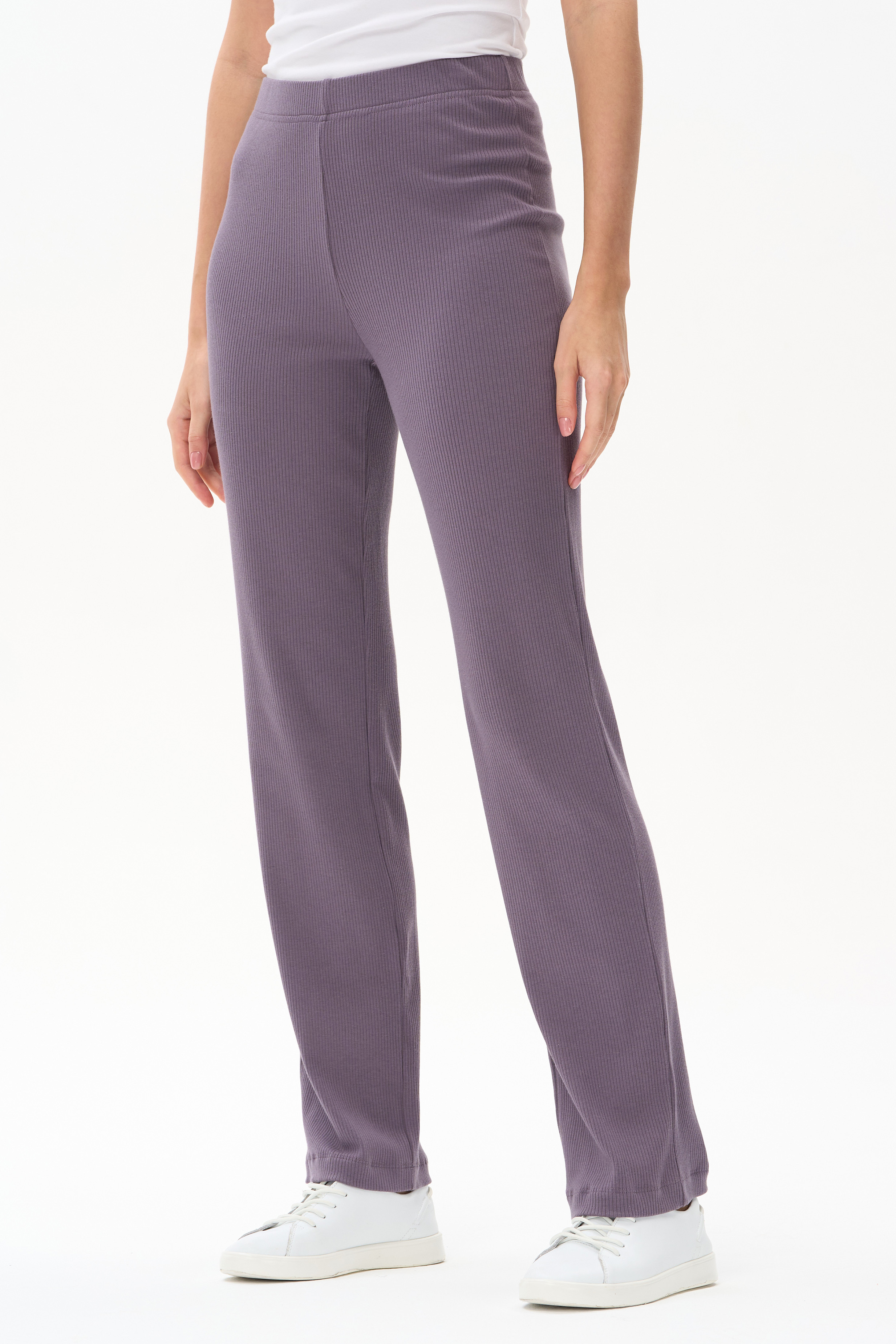 49% хлопок, 49% модал, 2% эластан Прямые брюки из фактурного хлопкового полотна с модалом в трендовом фиалковом оттенке. Модель с комфортным прилеганием и идеальной посадкой, пояс с мягкой эластичной лентой внутри. Длина брюк по боковому шву в 44 размере -108 см. Рост модели 175 см.