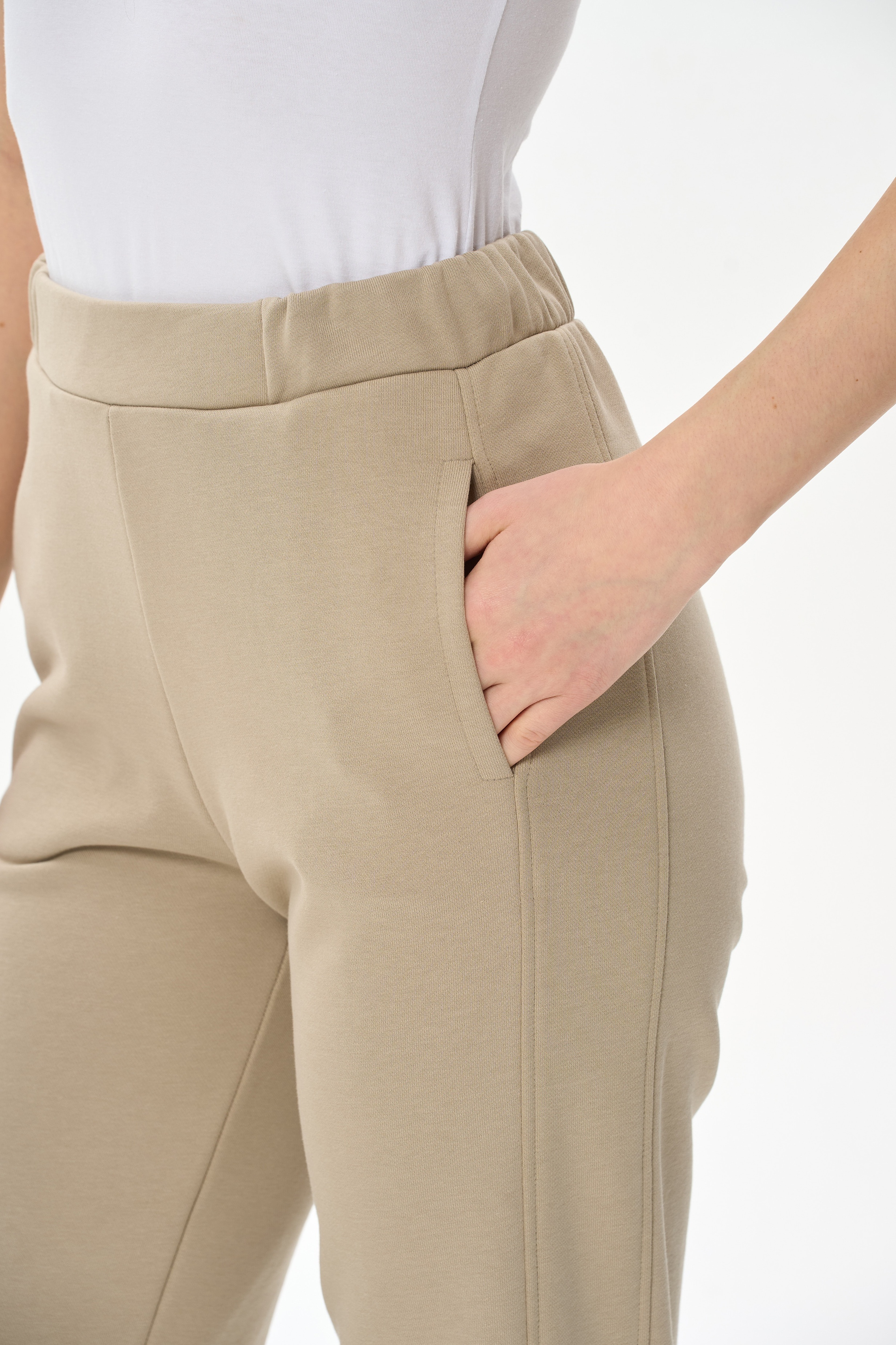 100% хлопок Брюки прямого силуэта с лампасами. Выполнены из плотного хлопкового футера 3-х нитки-петли с изнанки с устойчивым рубчиком. Брюки с карманами в рельефных швах. Длина по боковому шву в 44 размере - 102см. Рост модели на фото 178 см.