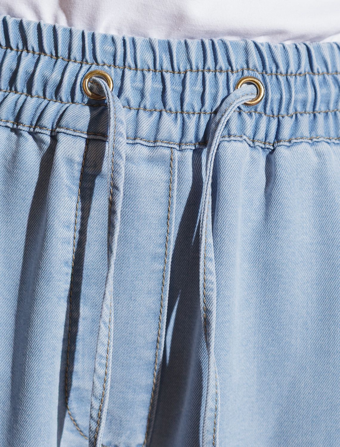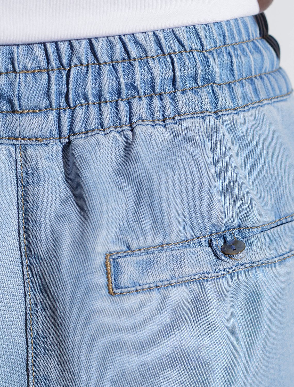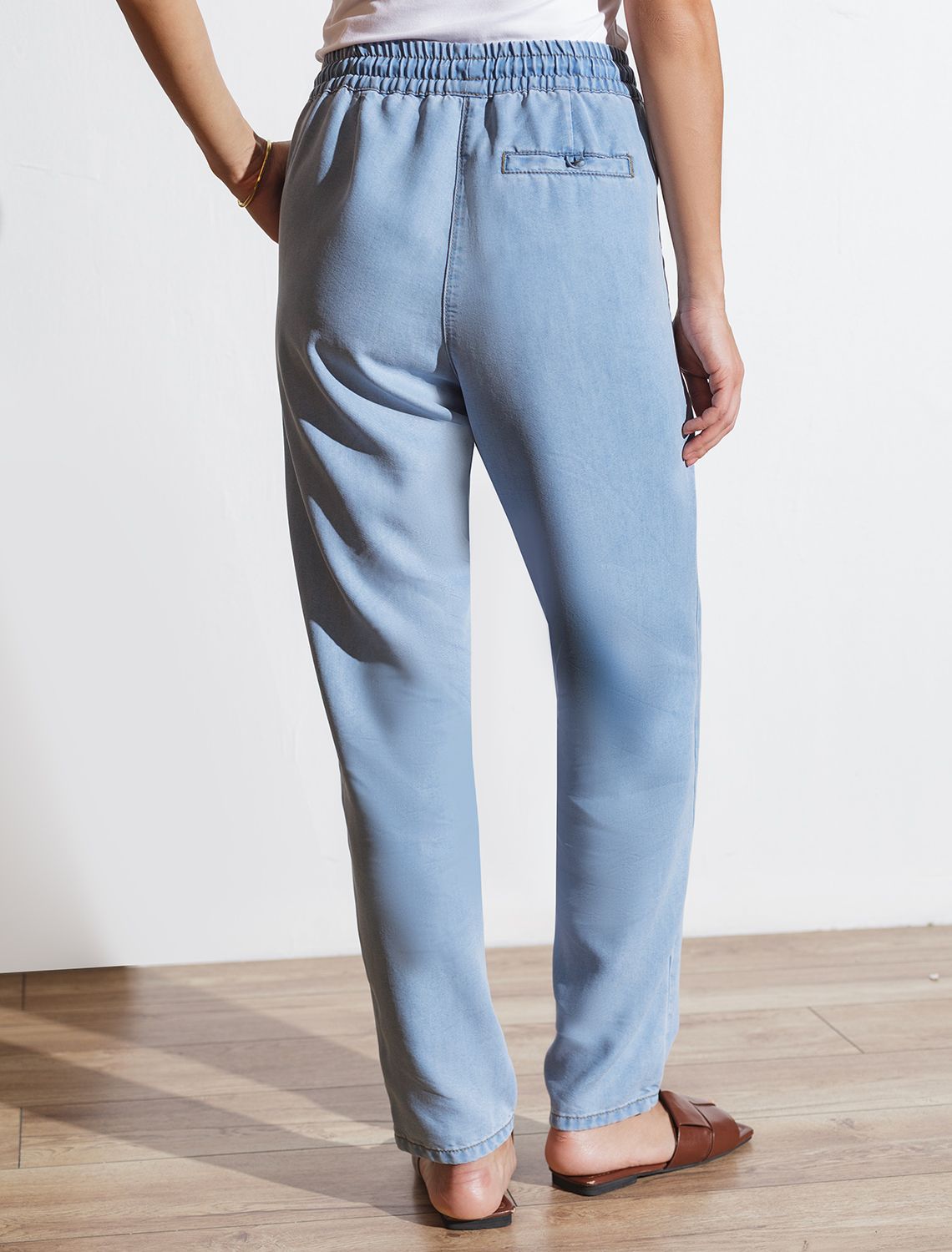 Брюки бананы с поясом на резинке из джинсового лиоцелла D54.257 светло-голубой