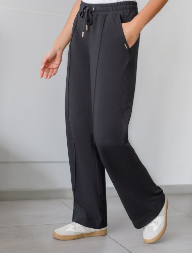 Брюки-дудочки выполнены из джерси. Модель дополнена резинкой сзади, одним вместительным карманом спереди и небольшими боковыми разрезами. Заутюженные стрелки и посадка на талии визуально вытягивают силуэт. Изделие хорошо держит форму, отлично тянется и почти не мнется во время использования. Идеальный вариант в офис или в повседневный классический стиль.