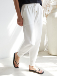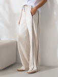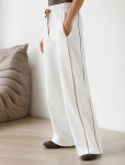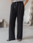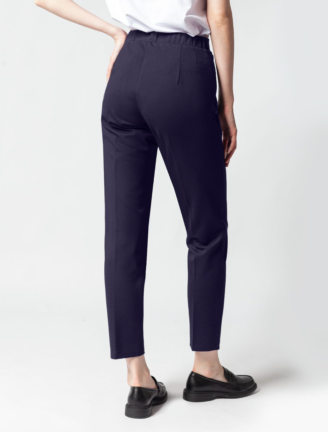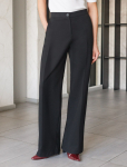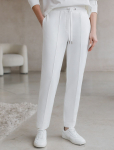 Брюки "дудочки" выполнены из плотного джерси. Высокая посадка зрительно увеличивают рост и визуально стройнит. Модель дополнена сзади эластичным поясом на резинке и боковыми разрезами по низу штанин. Одним кармашком спереди. Лаконичные брюки станут идеальным дополнением базового гардероба. С легкостью дополнят строгий офисный стиль и праздничный образ.