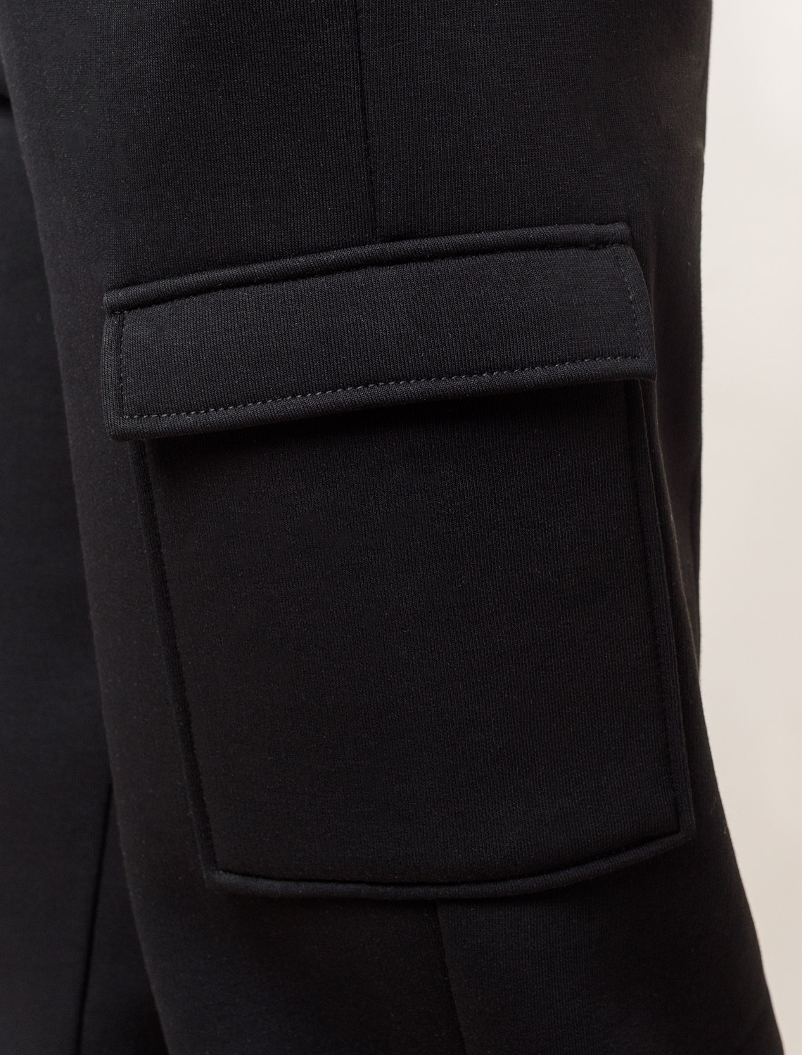 Эти функциональные брюки незаменимы для путешествий и спортивных занятий на улице. По бокам расположены большие карго карманы с клапаном, которые позволяют удобно хранить мелкие вещи под рукой. Спортивный стиль сочетается с элементами милитари, что делает трендовые брюки актуальными для современных тенденций.