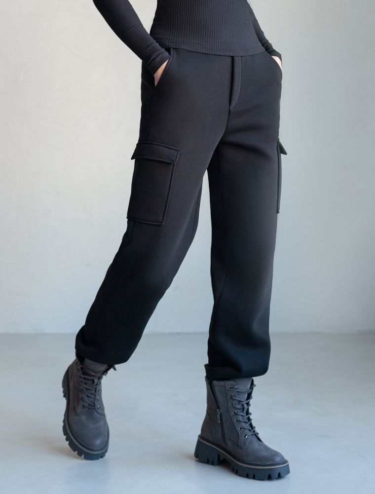 Эти функциональные брюки незаменимы для путешествий и спортивных занятий на улице. По бокам расположены большие карго карманы с клапаном, которые позволяют удобно хранить мелкие вещи под рукой. Спортивный стиль сочетается с элементами милитари, что делает трендовые брюки актуальными для современных тенденций.