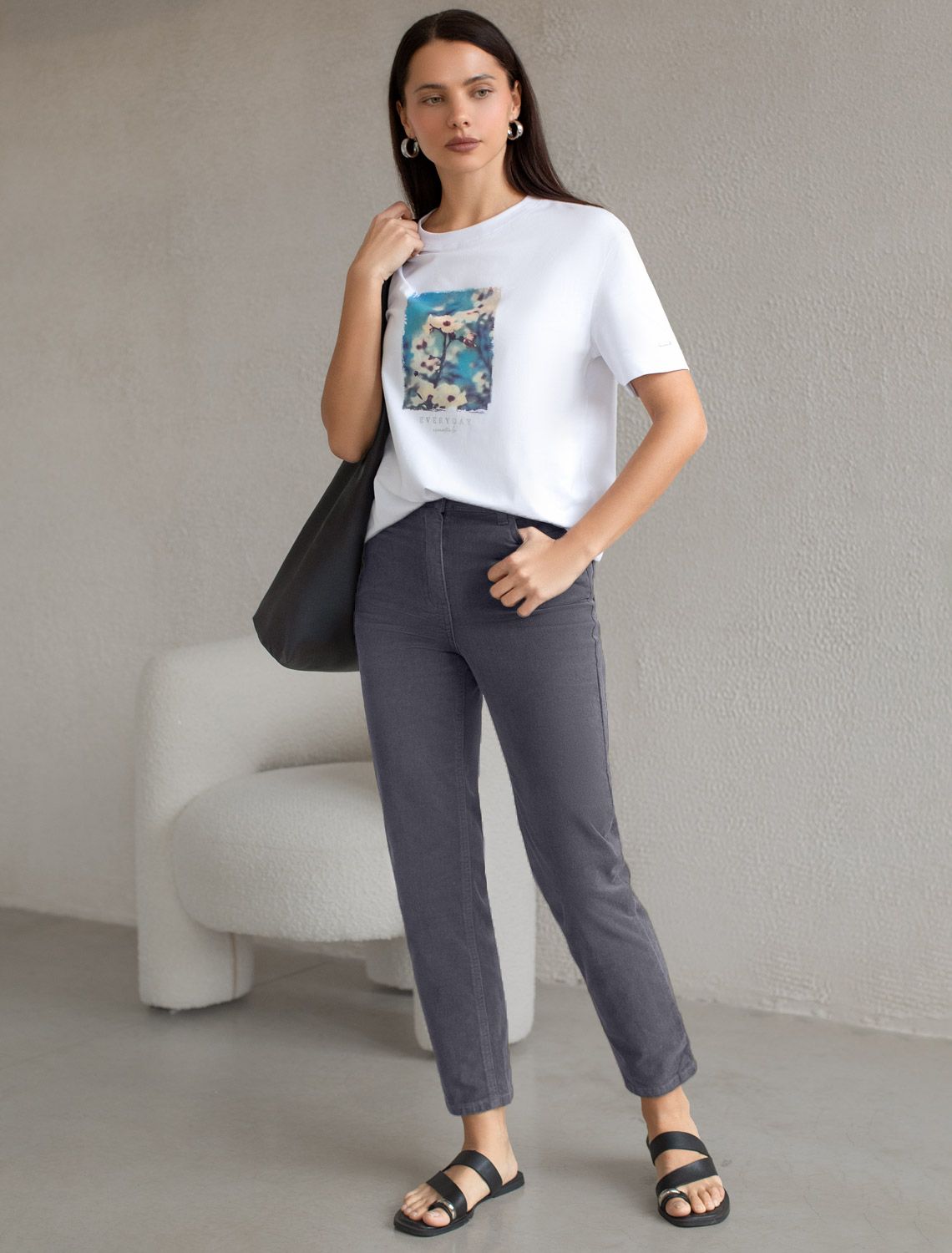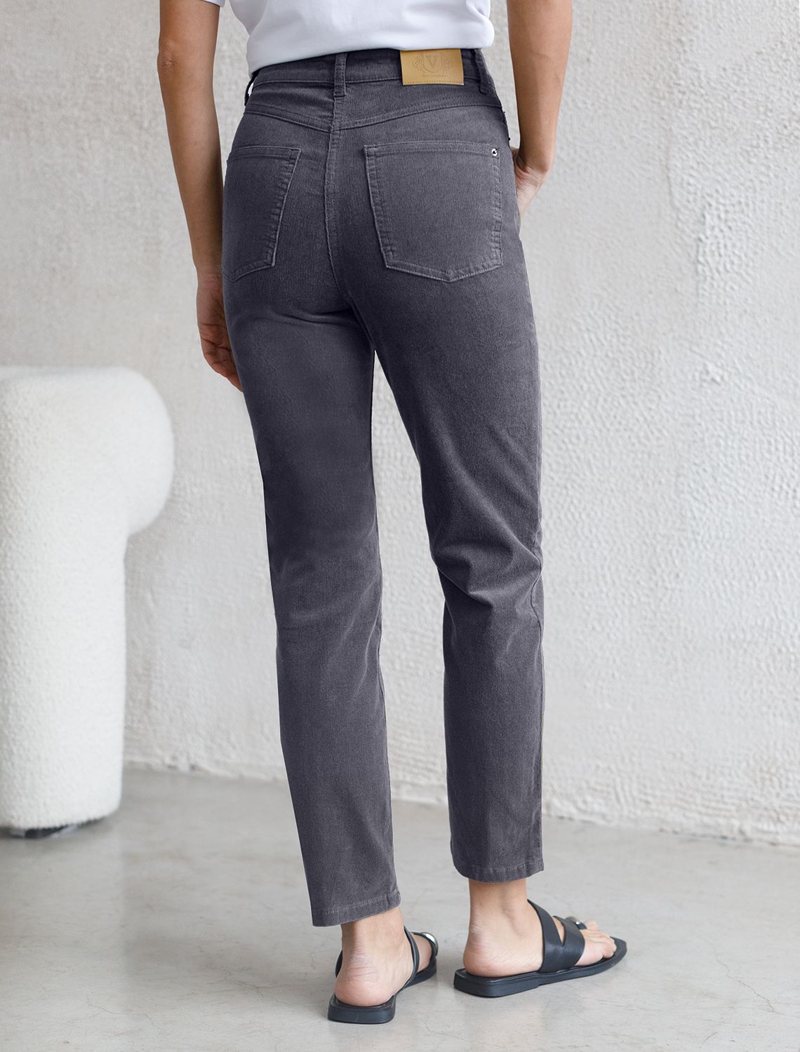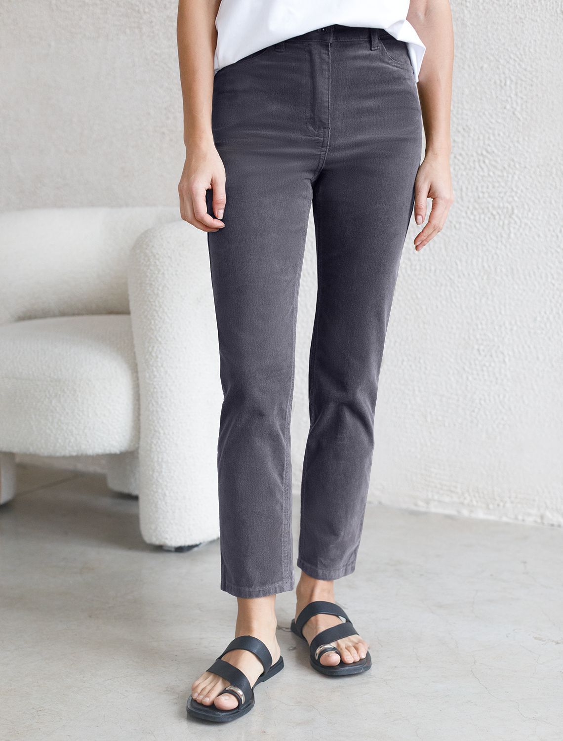 Укороченные эластичные брюки слим из микро вельвета D24.283 серый
