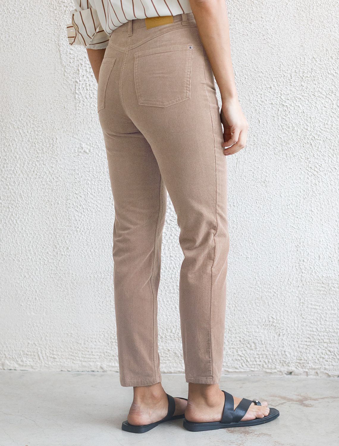Вельветовые брюки женские зауженные в фасоне мом слим станут идеальным дополнением к теплому образу осенью и зимой. Они выполнены из мягкой хлопковой эластичной ткани, которая обеспечивает комфорт и защищает от холода.