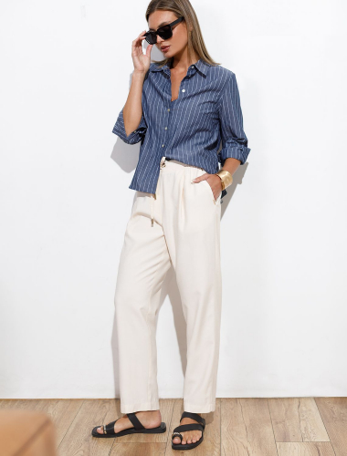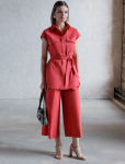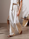 Брюки выполнены из плотного лиоцелла. Модель дополнена карманами и поясом с эластичной резинкой и регулируемым шнурком с золотистой фурнитурой. Ткань изделия отлично держит форму, плавно драпируется и не просвечивает. В теплое время года приятно охлаждает кожу. Добавление синтетических волокон в составе изделия, предотвращает сминаемостьи поддерживает формоустойчивость. Брюки сочетаются в костюме с топом D23.063 и блузкой D29.266, D29.267 и жилетом D27.002