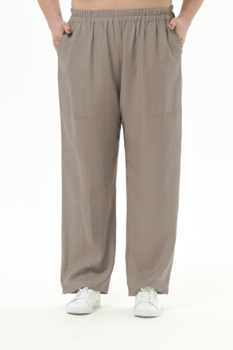 В боковых швах карманы. Верх на резинке шириной 3,5 см.