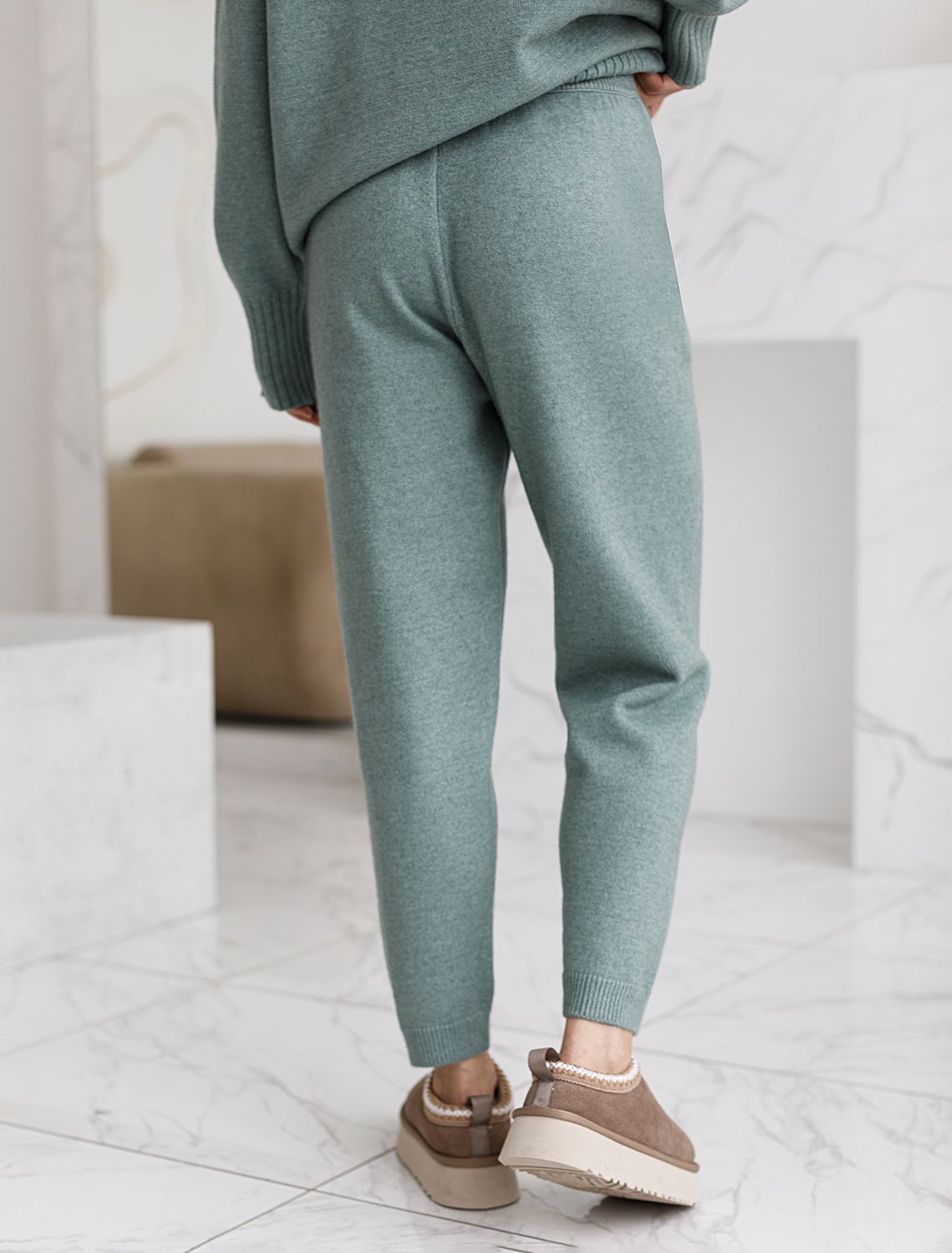 Брюки выполнены из мягкой пряжи с кашемиром. Изделие дополнено боковыми карманами и регулирующим шнуром на поясе. Мягкая пряжа очень приятная к телу, поддержит комфорт на протяжении всего дня, при этом не перегревая. Сочетается в костюме с D31.141, D31.147, D31.148, D31.149, D34.202, D34.203, D34.205, D34.206, D37.017, D37.018, D39.358, D39.359, D39.360 светло-оливковый меланж