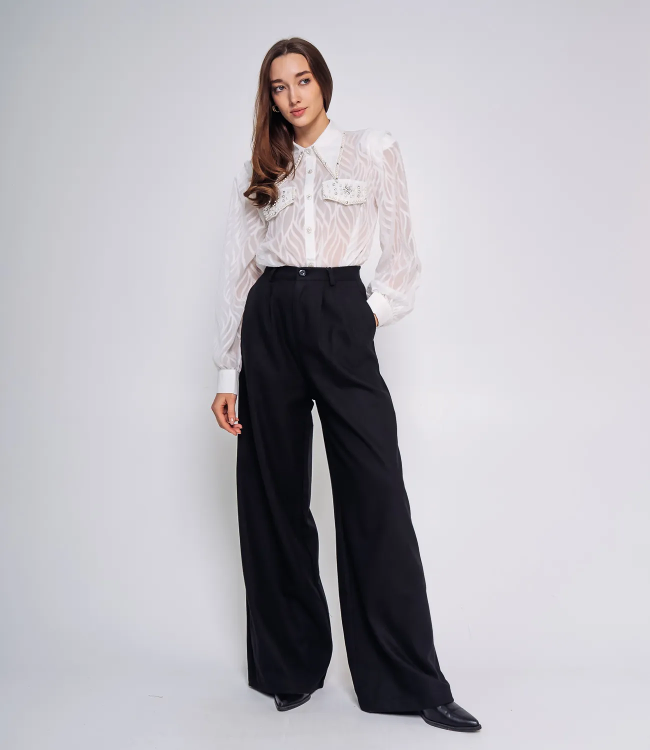 Брюки палаццо – это элемент одежды, который подчеркивает элегантность и стиль каждой женщины. Модель классических брюк палаццо отлично подойдет для создания утонченного образа как в повседневной жизни, так и на особый случай. Их выбирают покупательницы, которые ценят сочетание качества и разнообразия в своем гардеробе. Фасон акцентирует красоту фигуры и дарит свободу движений, создавая эффектный силуэт. Производитель знает, как разработать стильные и комфортные решения. Для пошива использована ткань из 100% хлопка, которая характеризуется безупречным качеством. Даже после многократных стирок брюки не потеряют своего первоначального внешнего вида и комфорта. Вы сможете носить их с радостью в любое время и в любом месте. Обратите внимание на цвет, он насыщенный и полностью соответствует фотографии на сайте. Чтобы вы могли быть уверены в размере, мы представили на странице таблицу. Воспользовавшись ею, вы сможете самостоятельно обмерить себя и удостовериться в правильном выборе. Установленная нами цена является адекватной и доступной. Не откажите себе в удовольствии выглядеть элегантно и стильно! Рост модели: 168, параметры: 85-63-92.