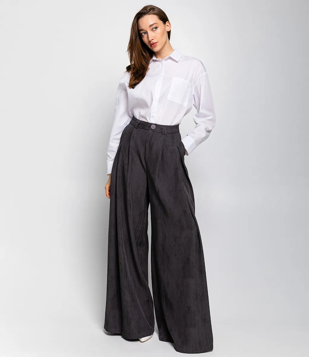 Брюки - это незаменимый элемент гардероба, который подчеркивает стиль и индивидуальность каждой женщины. Брюки свободного кроя с высокой талией, что придает фигуре стройность и элегантность. Широкие штаны добавляют изюминку в любой образ, создавая модный и актуальный вид. Швы выполнены аккуратно и качественно, а контрастные строчки подчеркивают современный дизайн. Изготовленные из 80% хлопка и 20% полиэстера, эти брюки обеспечивают отличную комфорт и приятное прикосновение к коже. Они удобно сидят на фигуре и хорошо подчеркивают силуэт, что делает их отличным выбором для повседневного ношения. Застежка на пуговицу и молнию на поясе добавляет функциональности и удобства в использовании. Логотип на притачной этикетке придает модели стильный акцент, подчеркивая ее оригинальность и качество. Эти брюки прекрасно комбинируются с различными топами и обувью, от классических блузок до спортивных футболок, что позволяет создавать разнообразные образы для любой ситуации. Мы понимаем, как важно для ваших клиентов выбирать только лучшее. Именно поэтому мы предлагаем на нашем сайте таблицу размеров, которая поможет вашим покупателям легко определить правильный размер и оформить покупку с уверенностью. Цена этих стильных брюков является доступной и выгодной для оптовых покупателей. Не упустите возможность дополнять ассортимент вашего магазина качественными и привлекательными брюками, которые подарят вашим покупателям комфорт и элегантность каждый день! Рост модели 168, 85-63-92.
