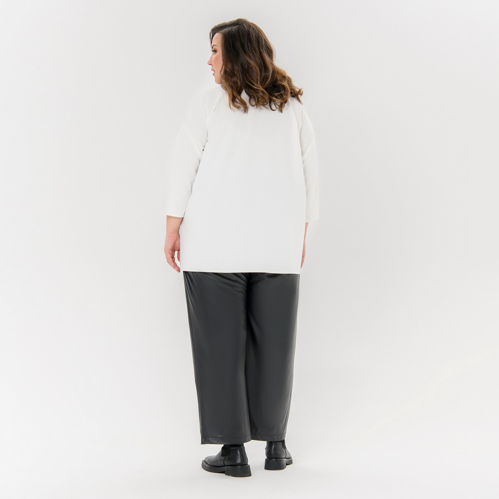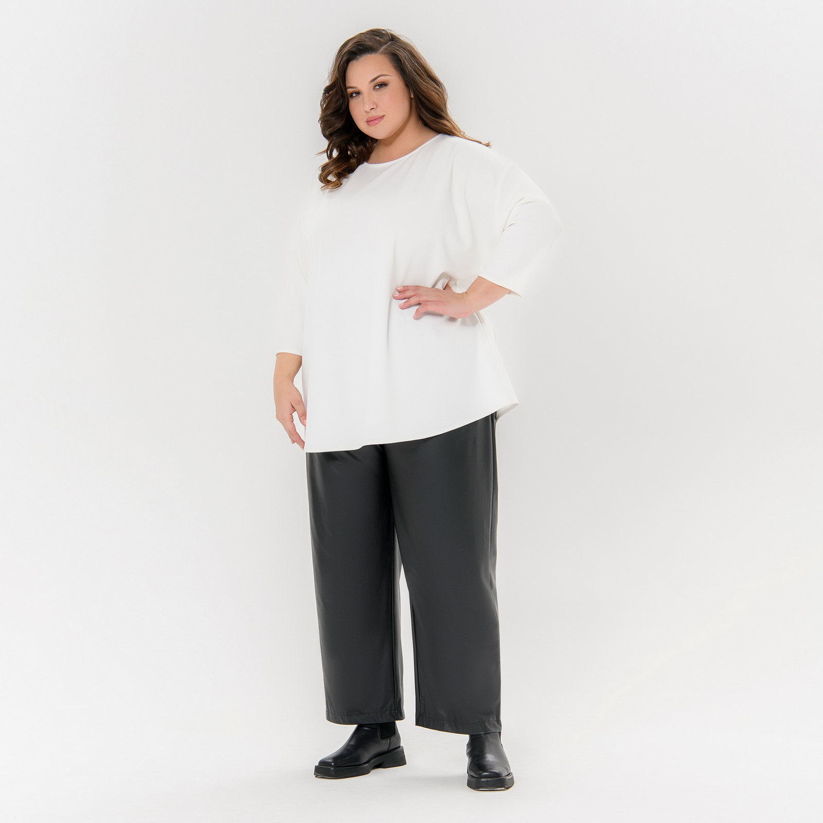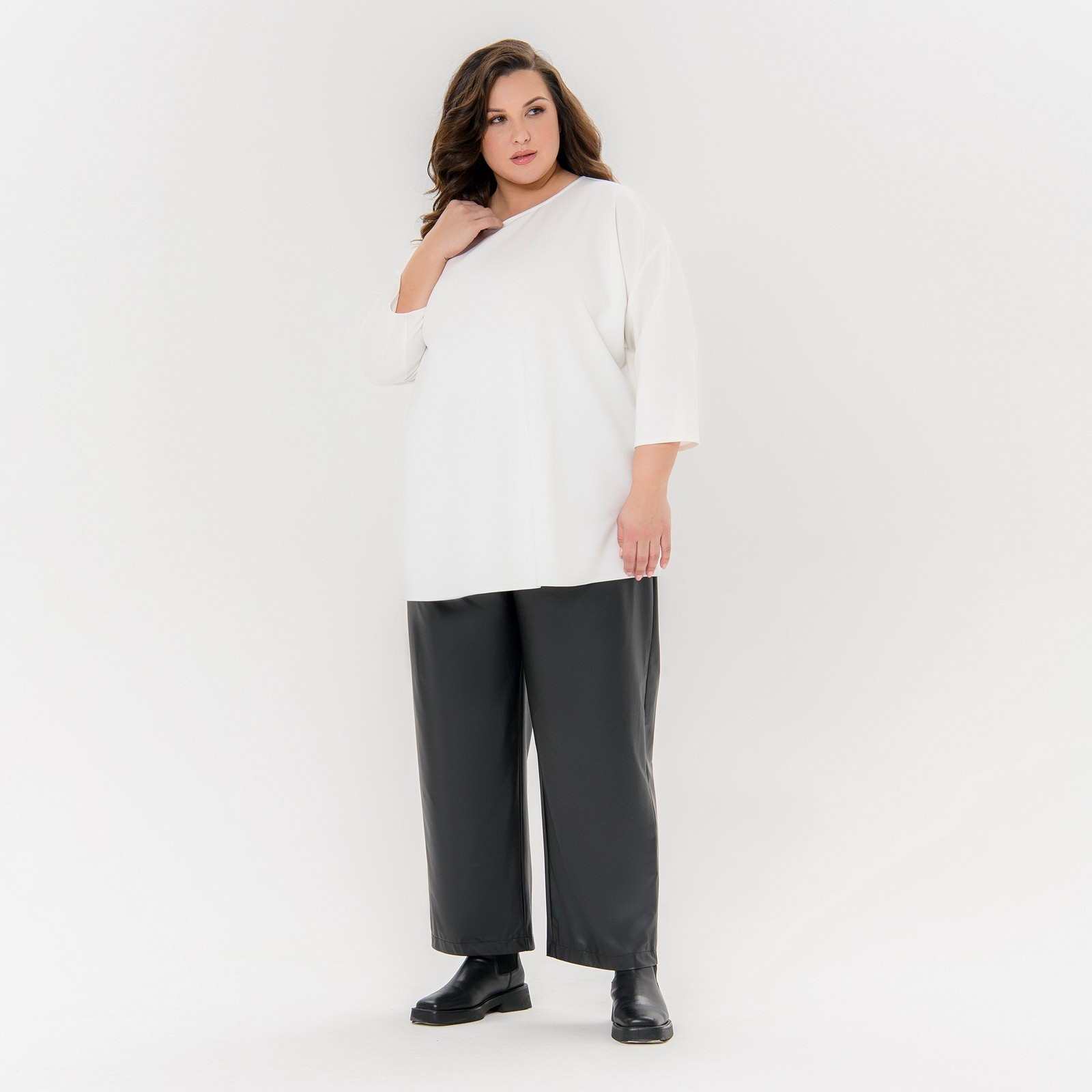 Прямые, свободные брюки "кюлоты" из экокожи. В боковых швах карманы. Верх на резинке шириной 3,5 см.