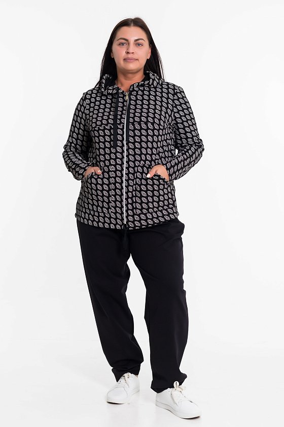 Женские брюки выполнены из однотонного академика. Брюки заужены к низу, по бокам размещены карманы. Спереди застроченная складка-защип, застежка на молнию и пуговицу. Пояс притачной со шлевками, с резинкой сзади.