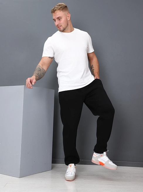 Мужские утепленные брюки Спринтер из мягкого трикотажа с начесом. Брюки имеют свободный крой, широкие штанины и эластичные манжеты внизу, которые обеспечивают комфорт и предотвращают задирание ткани. На талии расположен эластичный пояс с шнурком, который позволяет регулировать посадку.