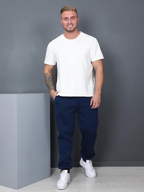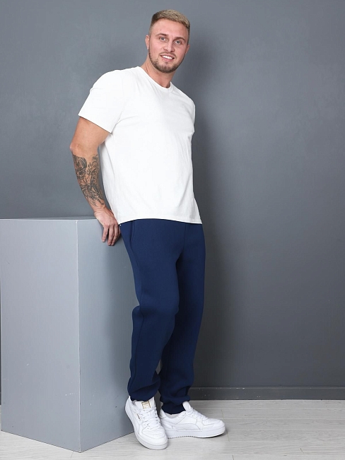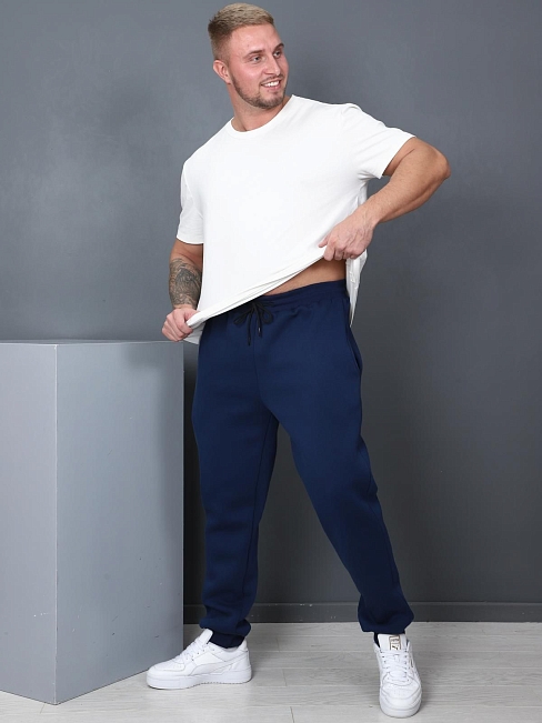 Мужские утепленные брюки Спринтер из мягкого трикотажа с начесом. Брюки имеют свободный крой, широкие штанины и эластичные манжеты внизу, которые обеспечивают комфорт и предотвращают задирание ткани. На талии расположен эластичный пояс с шнурком, который позволяет регулировать посадку.
