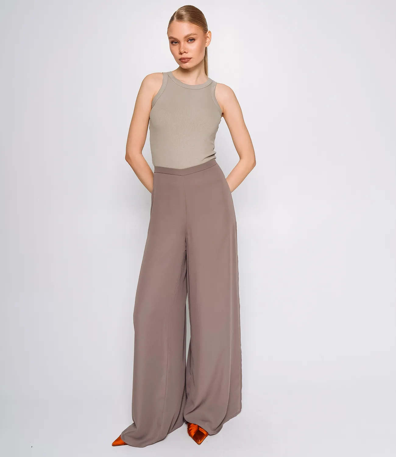 Брюки – это незаменимая часть гардероба, которая подчеркивает женственность и уникальность каждой представительницы прекрасного пола. Брюки с высокой талией, что визуально удлиняют ноги и подчеркивают фигуру. По бокам имеются разрезы, что прекрасно подойдёт для летного сезона и будут стильным акцентом любого образа. Эти брюки легко комбинируются с различными элементами одежды, что позволяет создавать стильные образы для любого случая. Производитель знает, как разработать стильные и комфортные решения, которые удовлетворяют потребности самых требовательных клиентов. Для пошива использована ткань из 100% полиэстер, которая характеризуется отличным качеством. Даже после множества стирок эти брюки сохранят свою первоначальную привлекательность и форму. Обратите внимание на цвет и текстуру ткани — они гармонично сочетаются с различными цветами и образами. Для удобства мы предоставили таблицу размеров на нашем сайте, чтобы ваши покупатели могли точно подобрать подходящий размер. Предложенная нами цена является доступной и выгодной для оптовых покупателей, что делает эти брюки отличным дополнением к ассортименту вашего магазина. Подарите своим клиентам удовольствие носить стильные и комфортные брюки, которые подойдут для любых летних дней! Рост модели: 173, параметры: 84-58-89.