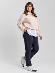 Брюки женские из трикотажного полотна «футер-двунитка», длинные, полуприлегающего силуэта, на притачном поясе с эластичной тесьмой внутри и карманами в боковых швах. Передние половины застрочены по центральным линиям, на задних половинах обработаны две вытачки в области талии.