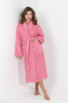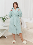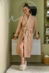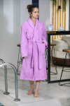 Брюки женские из трикотажного полотна «футер-двунитка», длинные, полуприлегающего силуэта, на притачном поясе с эластичной тесьмой внутри и карманами в боковых швах. Передние половины застрочены по центральным линиям, на задних половинах обработаны две вытачки в области талии.