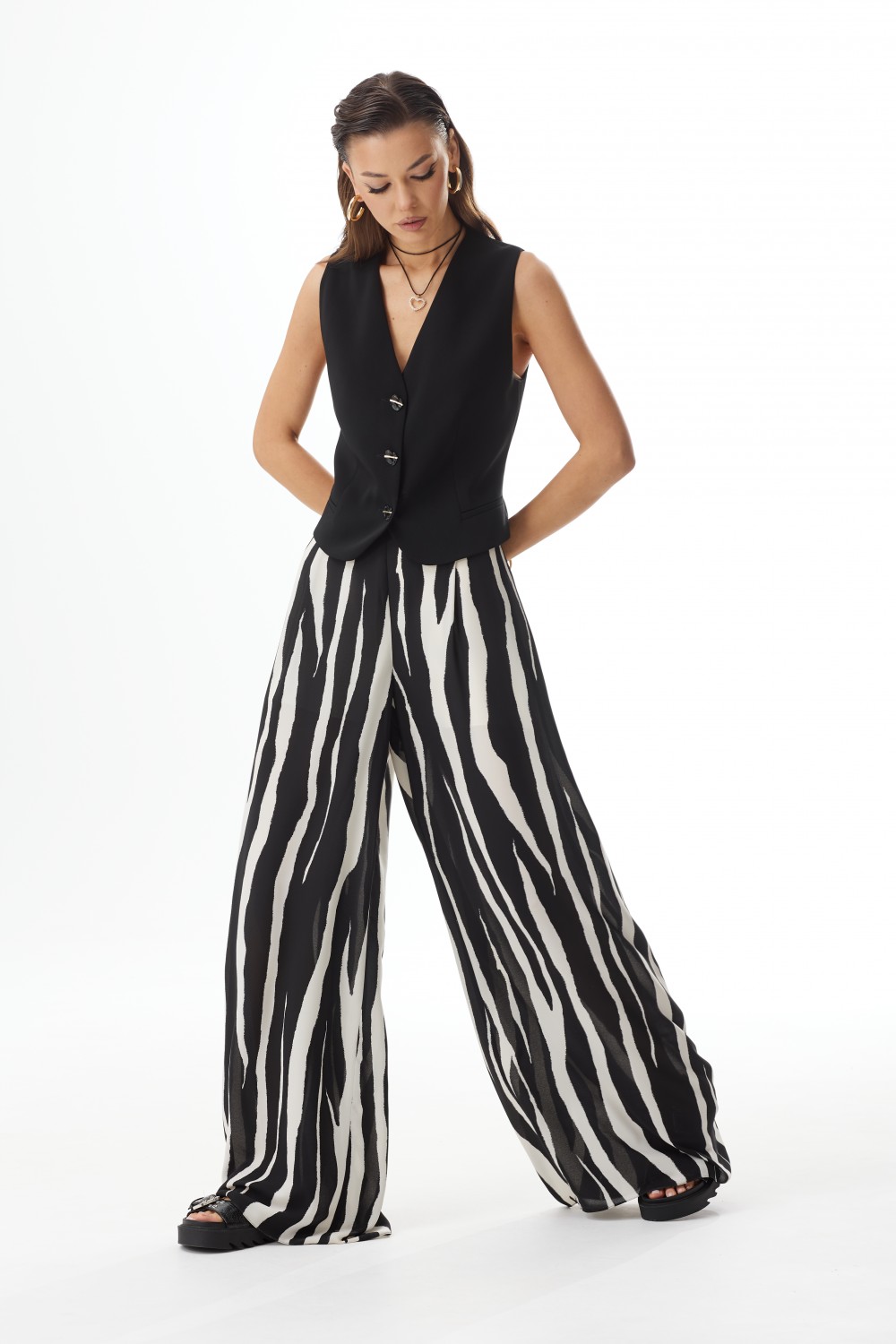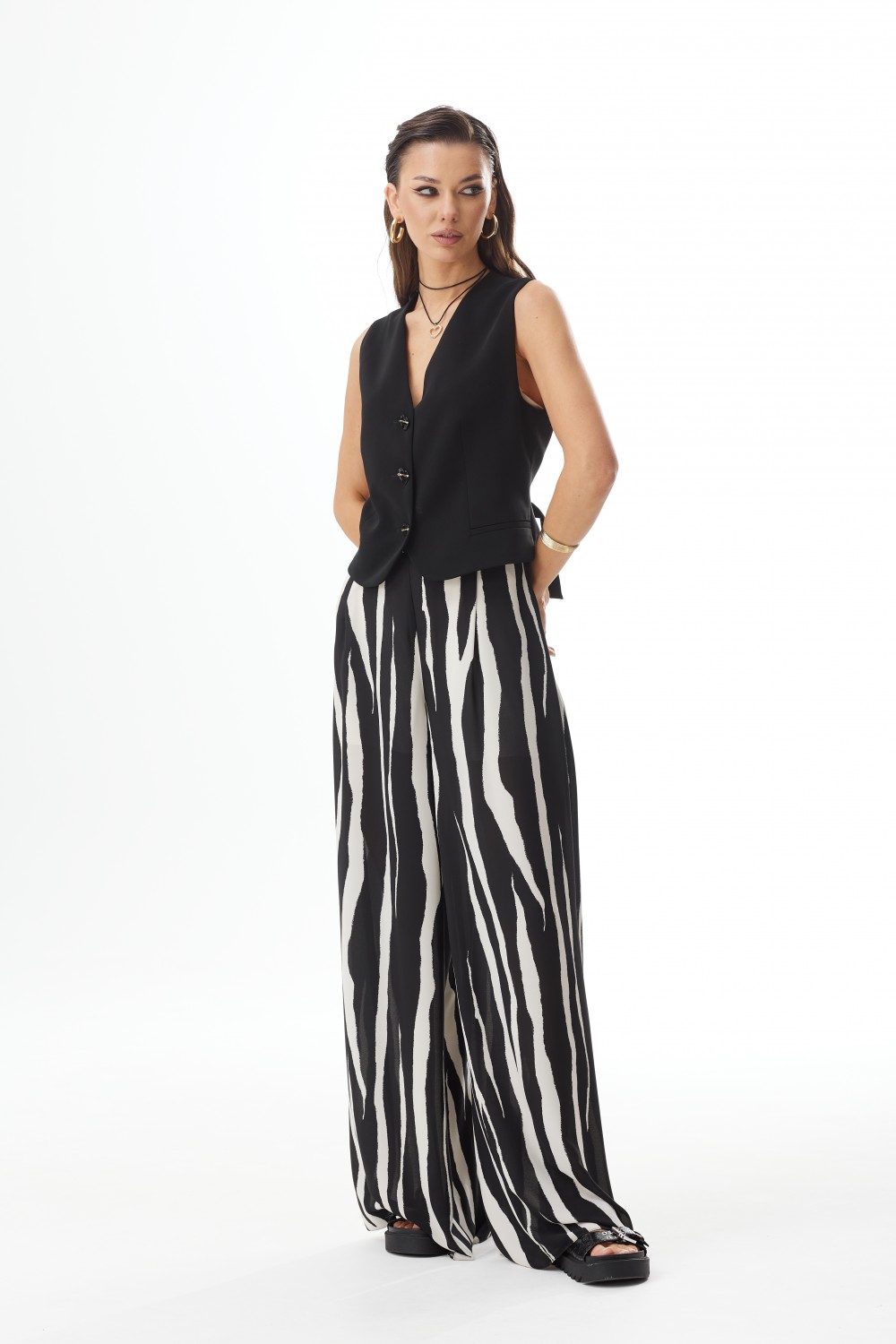 "Брюки палаццо. Верх на притачном поясе. Застежка на