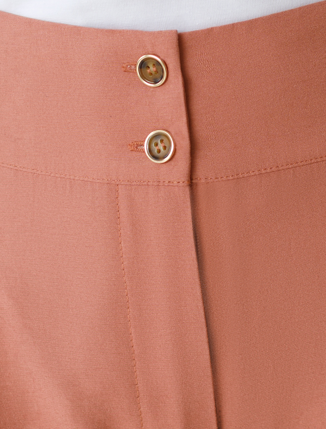 Брюки выполнены из плотного лиоцелла. Модель дополнена карманами и высоким поясом на пуговицах. Ткань изделия отлично держит форму, плавно драпируется и не просвечивает. В теплое время года приятно охлаждает кожу. Добавление синтетических волокон в составе изделия, предотвращает сминаемостьи поддерживает формоустойчивость. Брюки сочетаются в костюме с топом D23.063 и блузкой D29.266, D29.267 и жилетом D27.002 дымчато-коралловый
