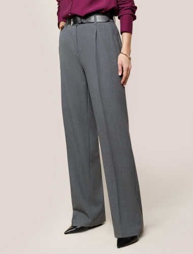 Брюки-палаццо выполнены из фактурной поливискозы. . Модель дополнена боковыми карманами и отлично подойдет как для строгого делового образа с блузкой и жакетом, так и для более расслабленного с футболкой и водолазкой. Эластичный материал изделия поддерживает оптимальный микроклимат, формоустойчивость и комфорт в течение всего дня.