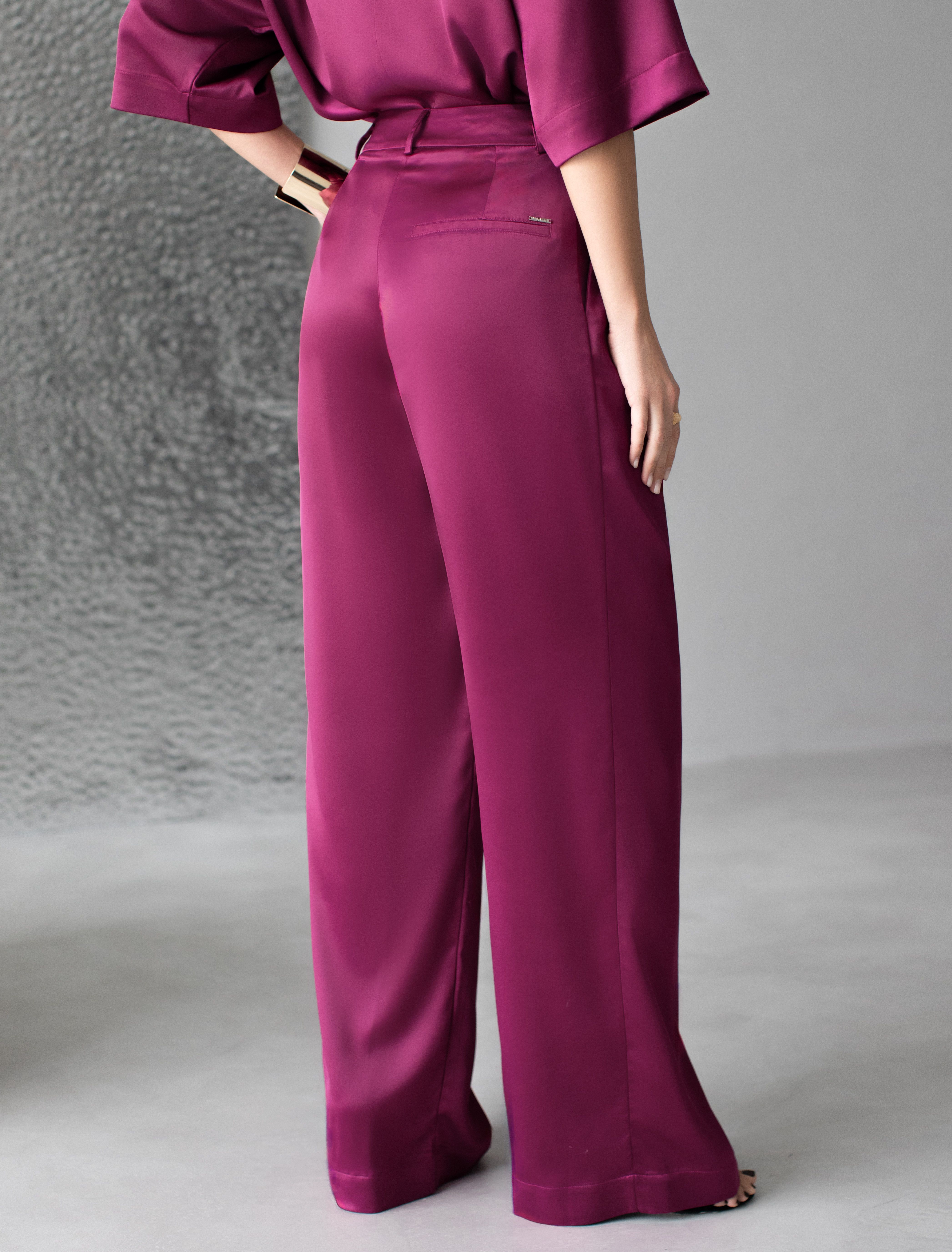 Брюки палаццо цвета бургунди из струящегося сатина, который придает образу эффектный и стильный вид. Мягкий сатин приятен к телу, в них комфортно на протяжении долгой носки. Брюки длиной в пол визуально вытягивают силуэт и подходят как для высоких, так и для женщин низкого роста. Модель идеально садится на большие размеры, не сковывая движений. Благородный материал обеспечивает не только привлекательный внешний вид, но и ощущение легкости в носке. Высокая посадка выгодно подчеркивает фигуру, добавляя изящества и современного шарма, они струятся при каждом движении.