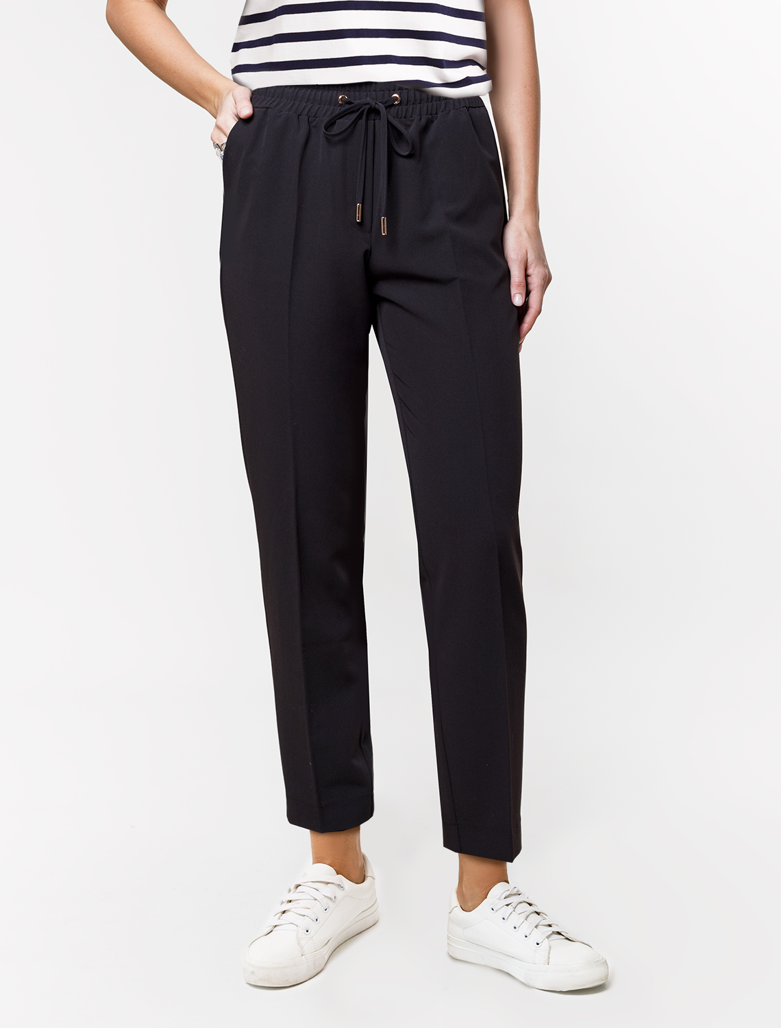 Брюки с поясом на резинке из поливискозы с эластаном D24.228 черный