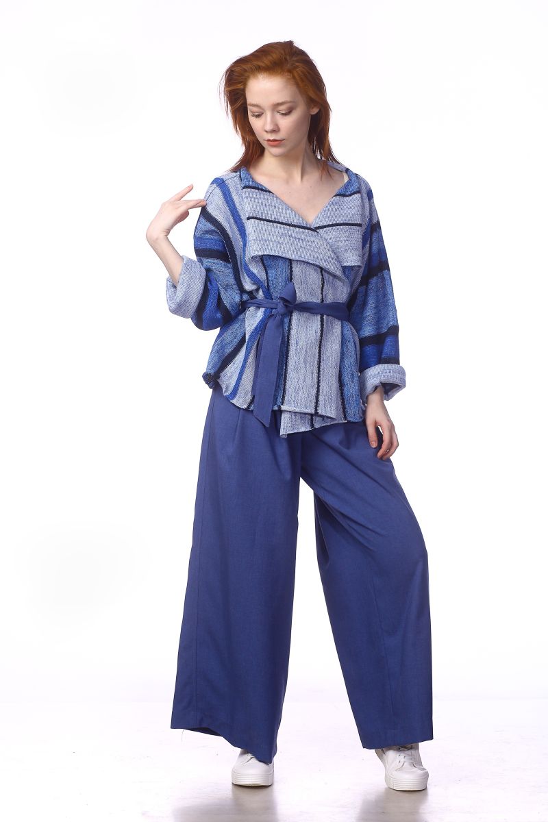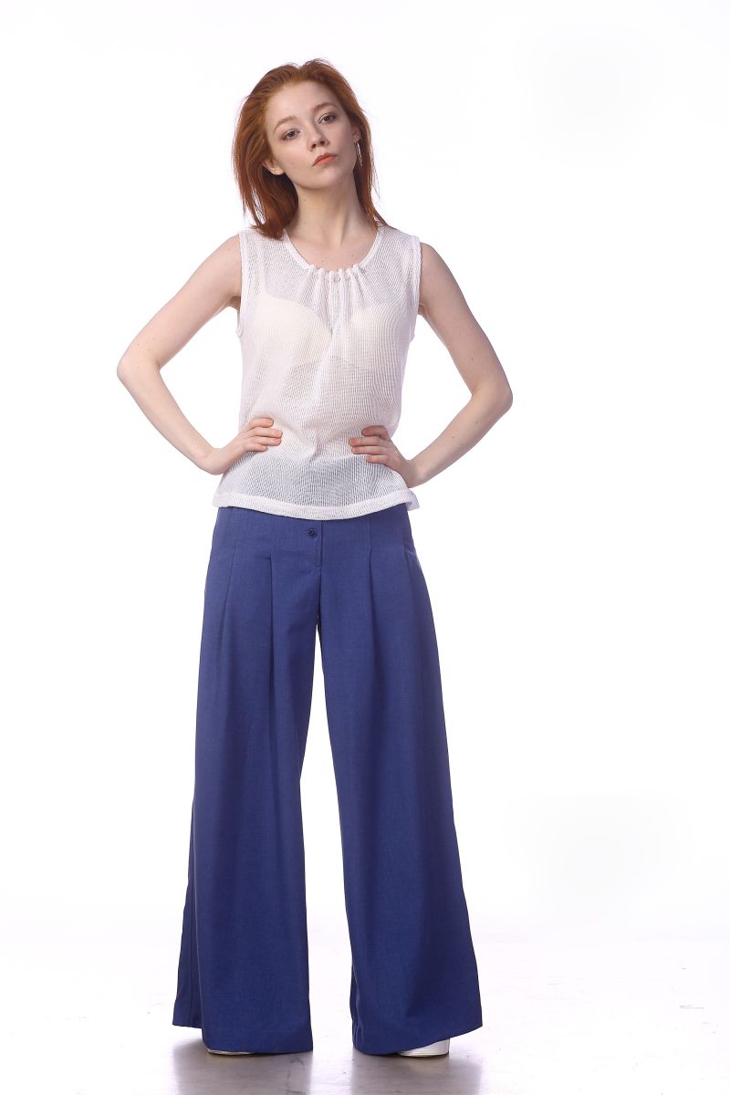Описание: Брюки широкие, складки, карманы, застежка на пуговицы.