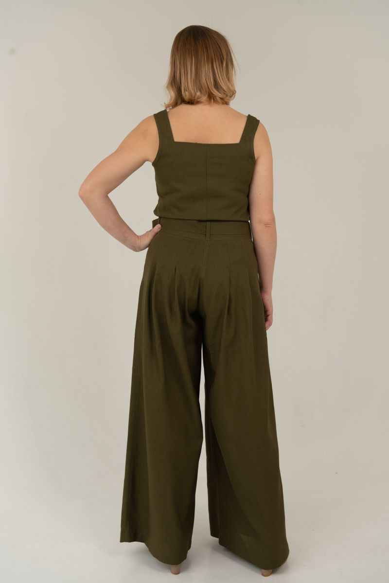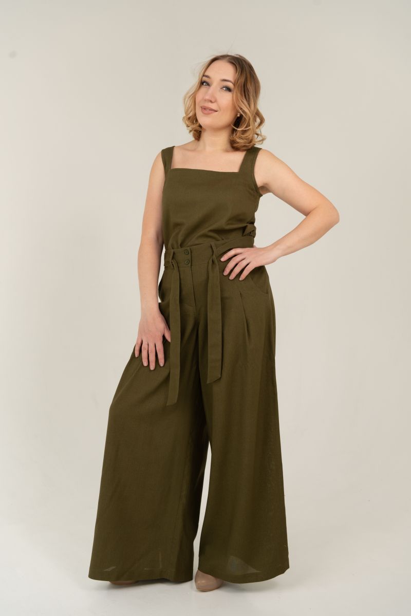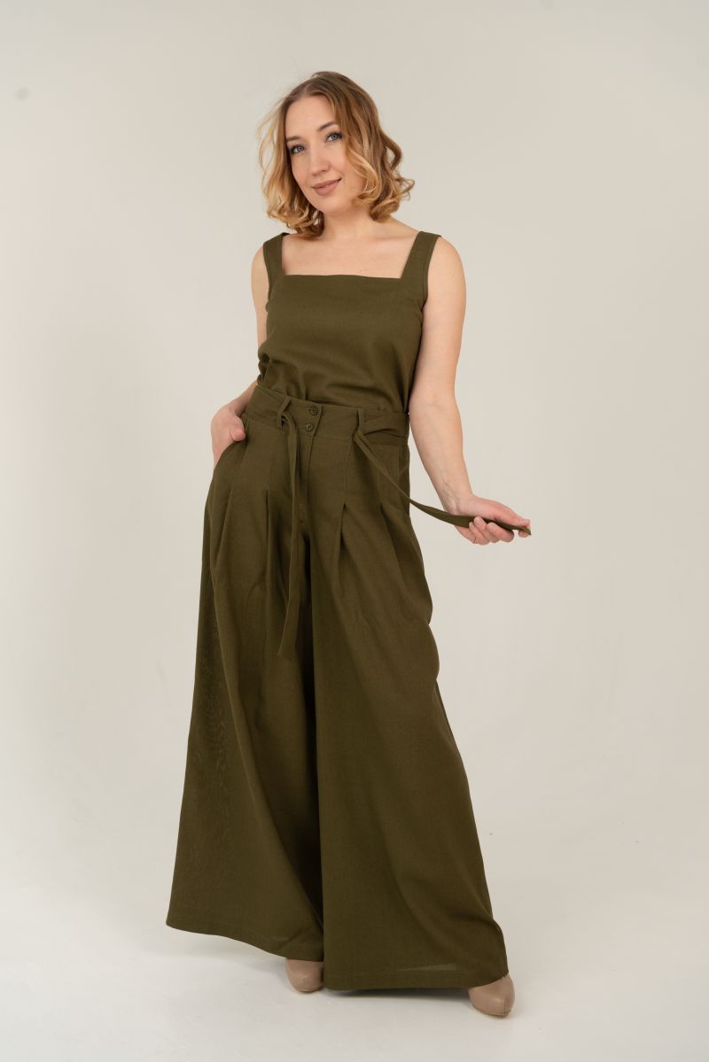 Описание: Брюки широкие, пояс, молния, карманы, складки