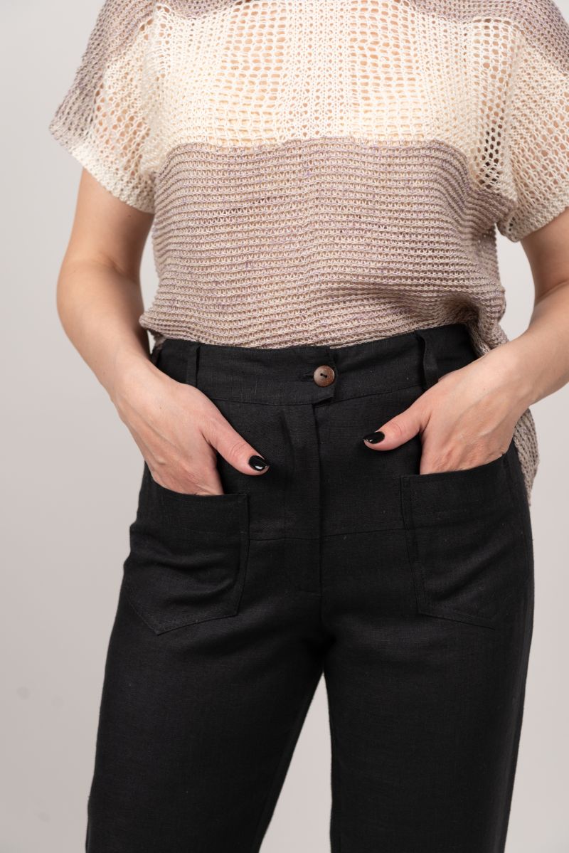 Описание: Брюки прямого силуэта, пояс, молния, спереди два кармана, сзади один карман